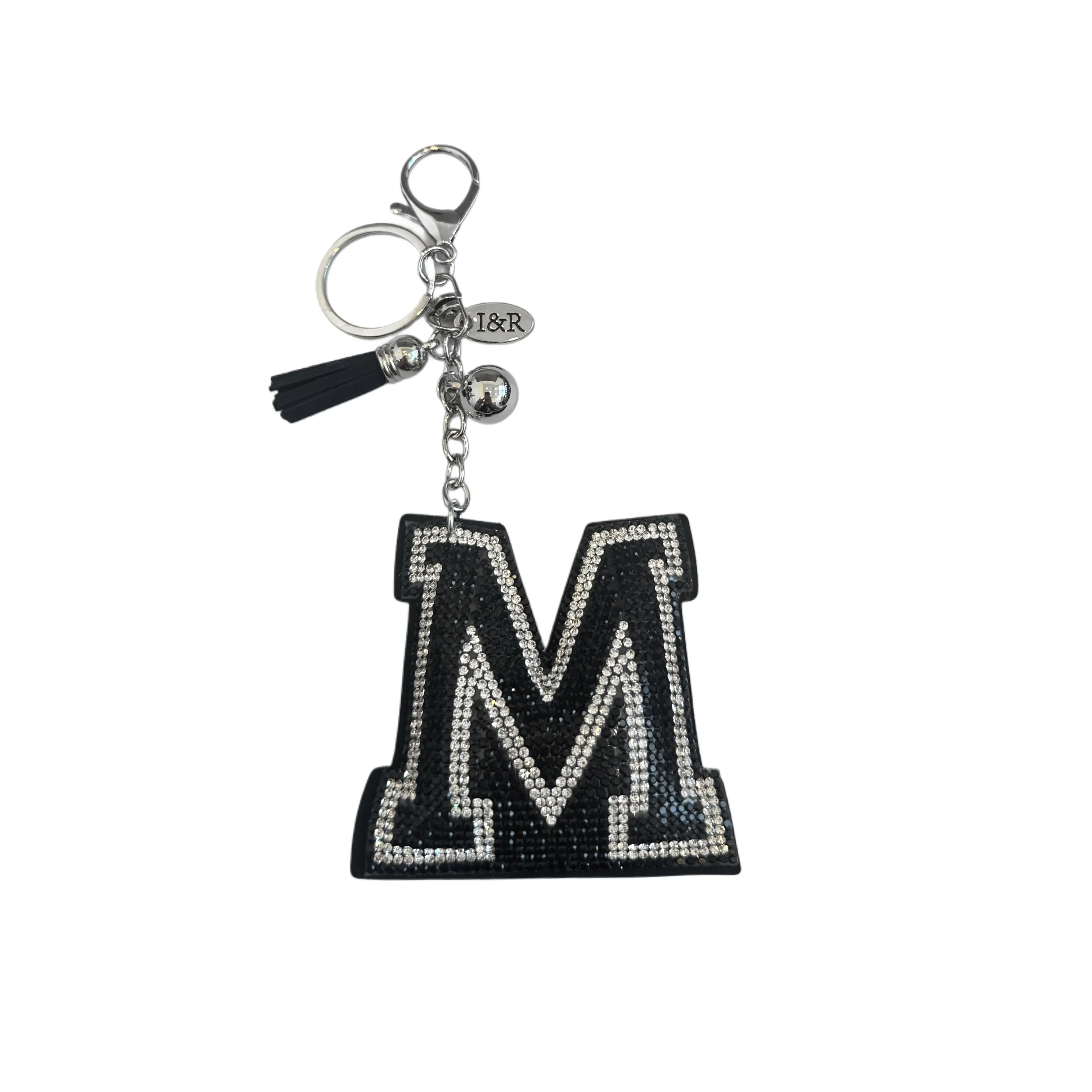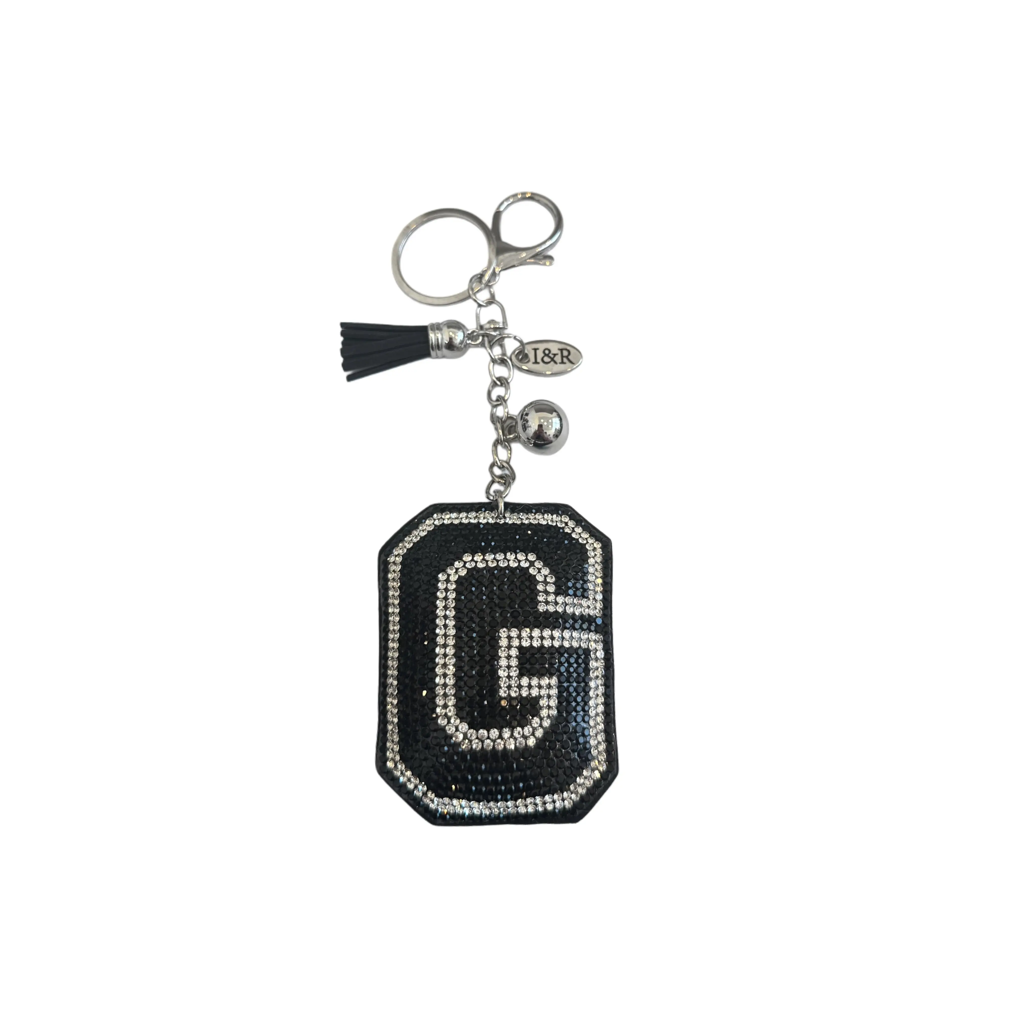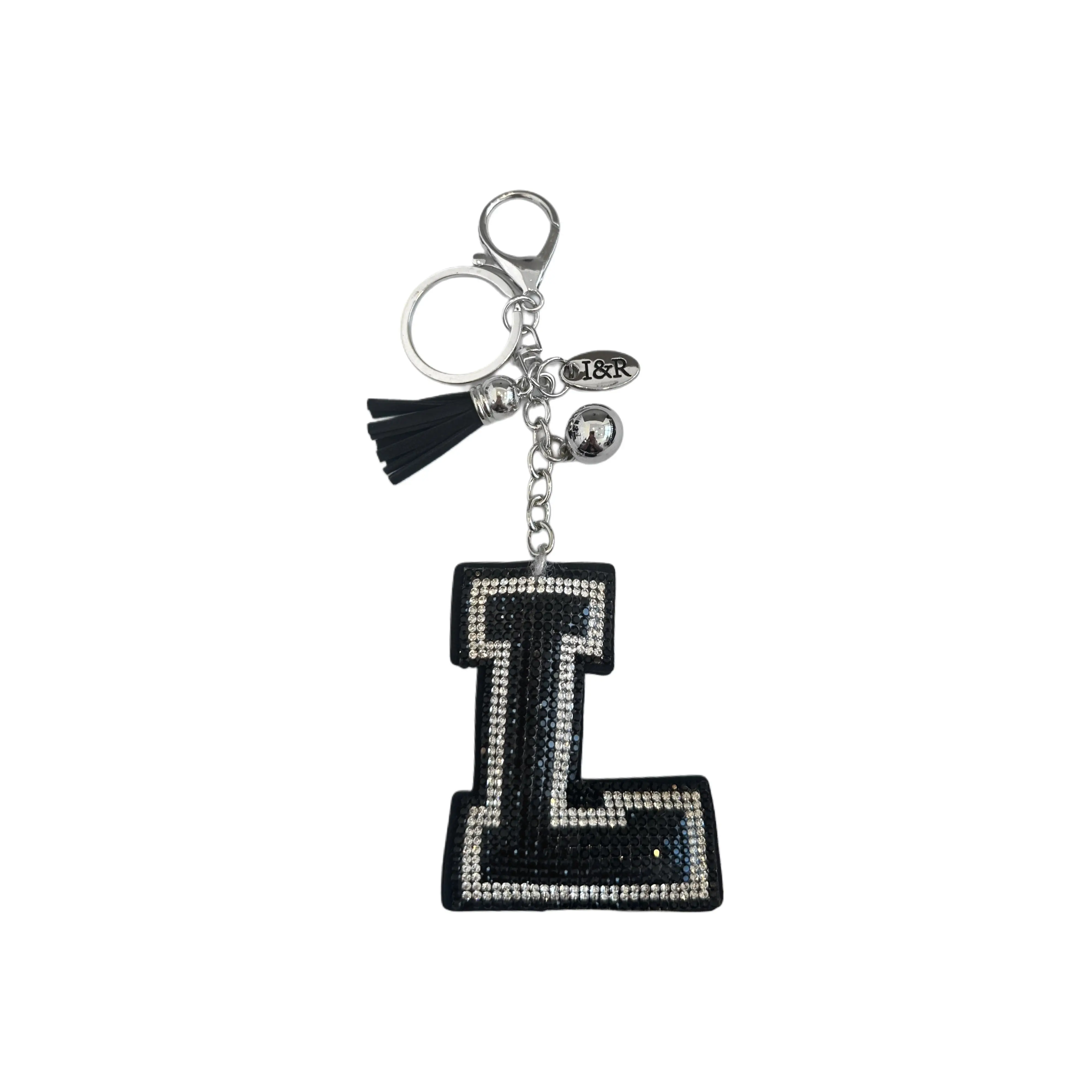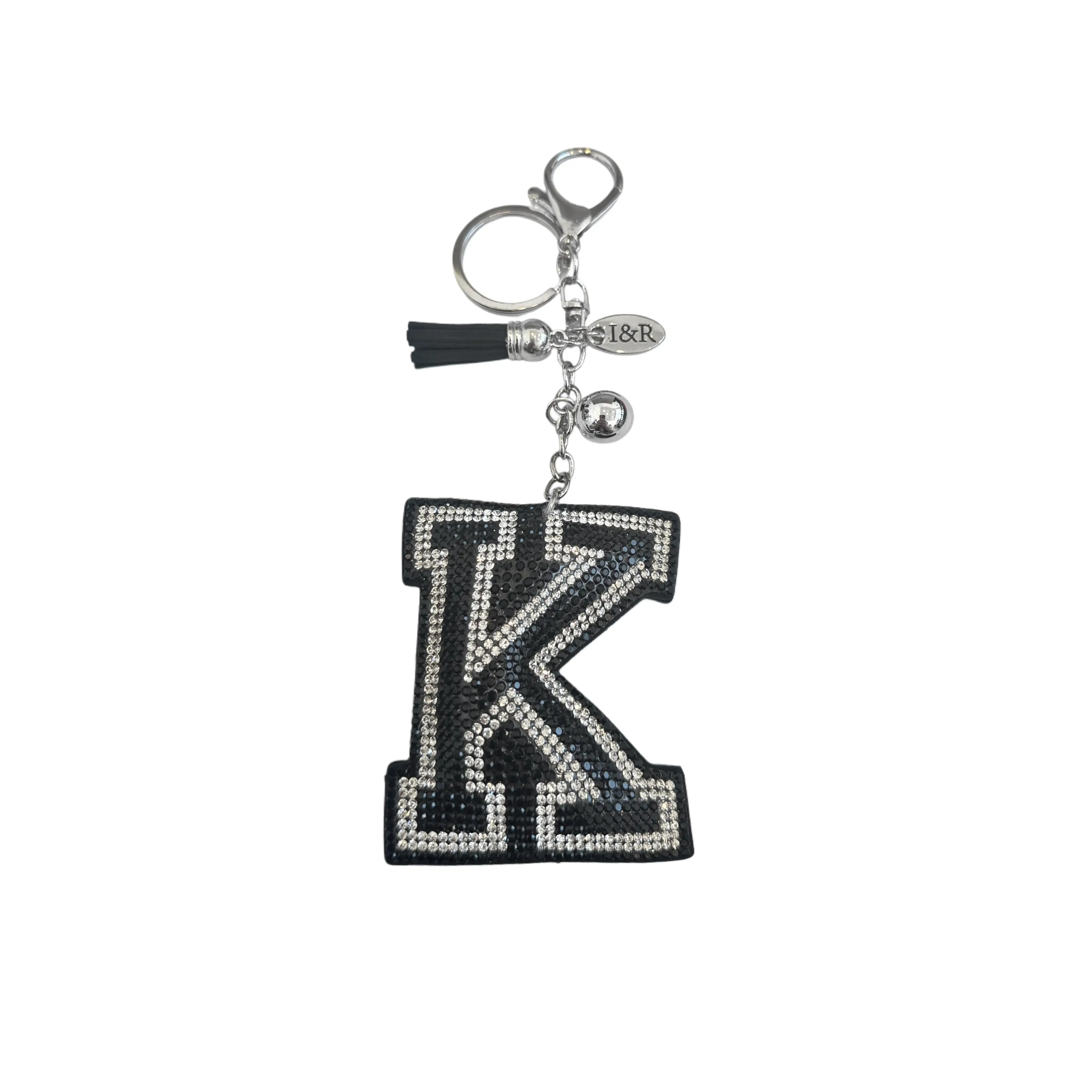 Iris Black Studs Initial Letters Charms Decorative with Keychain Pendant (#CL13) By Iris & Rainbow