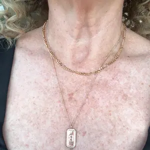 Love the quality and the style of this piece, I’ve worn it in the shower has yet to tarnish. 👍❤️ you also get two pieces for the price of one how can you beat that deal.