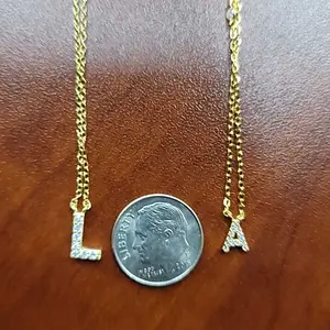 I ordered 2 necklaces the letters "A" and "L". The letter "A" is almost a third of the size of the letter "L". I would have preferred them to be the same size; since I am gifting to my young daughter and her friend.Necklaces are still cute and Danity. Sizing is just off letter to letter.