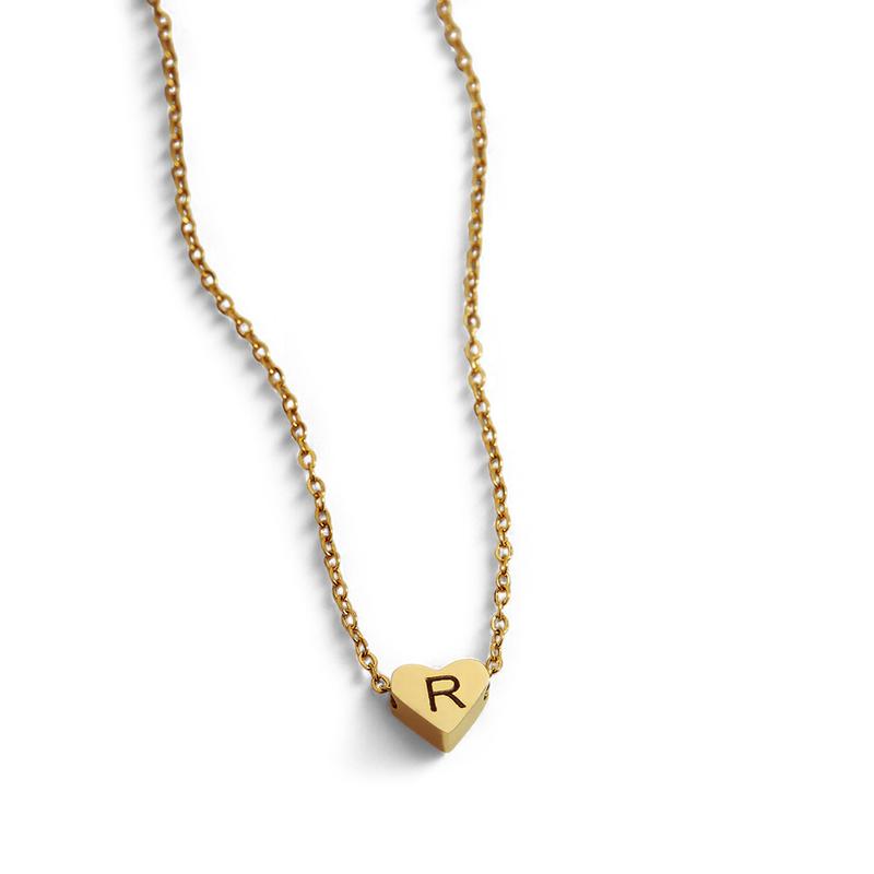 5. Dainty Heart Initial Necklace