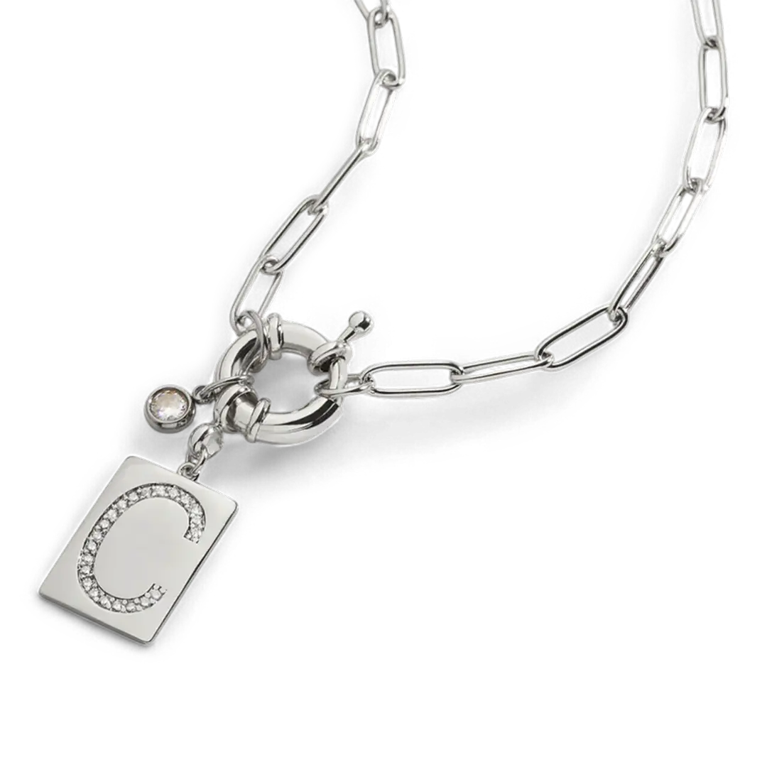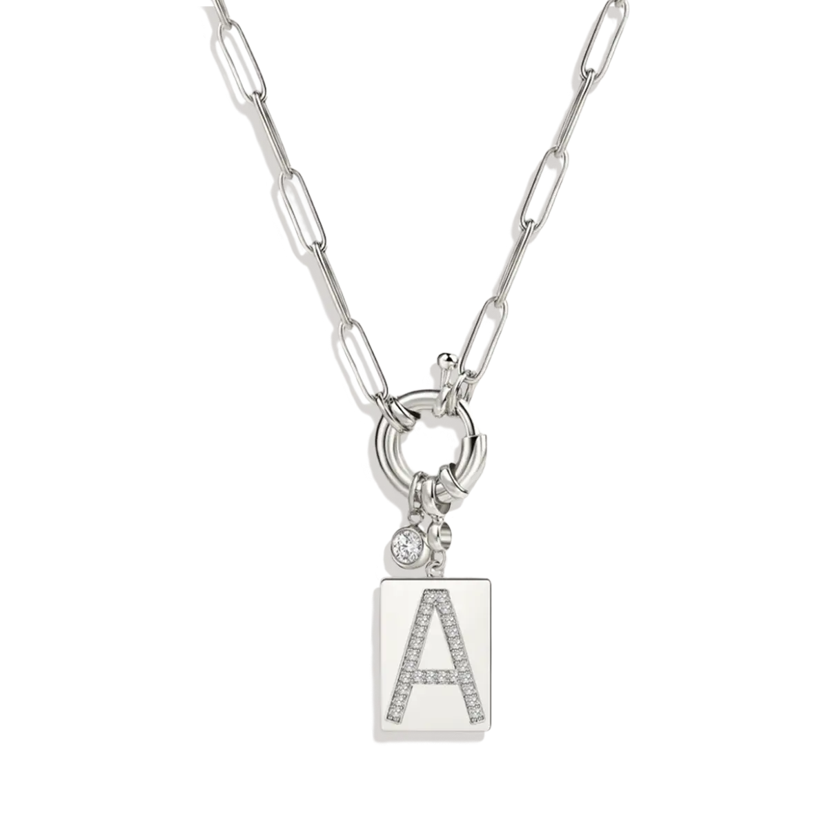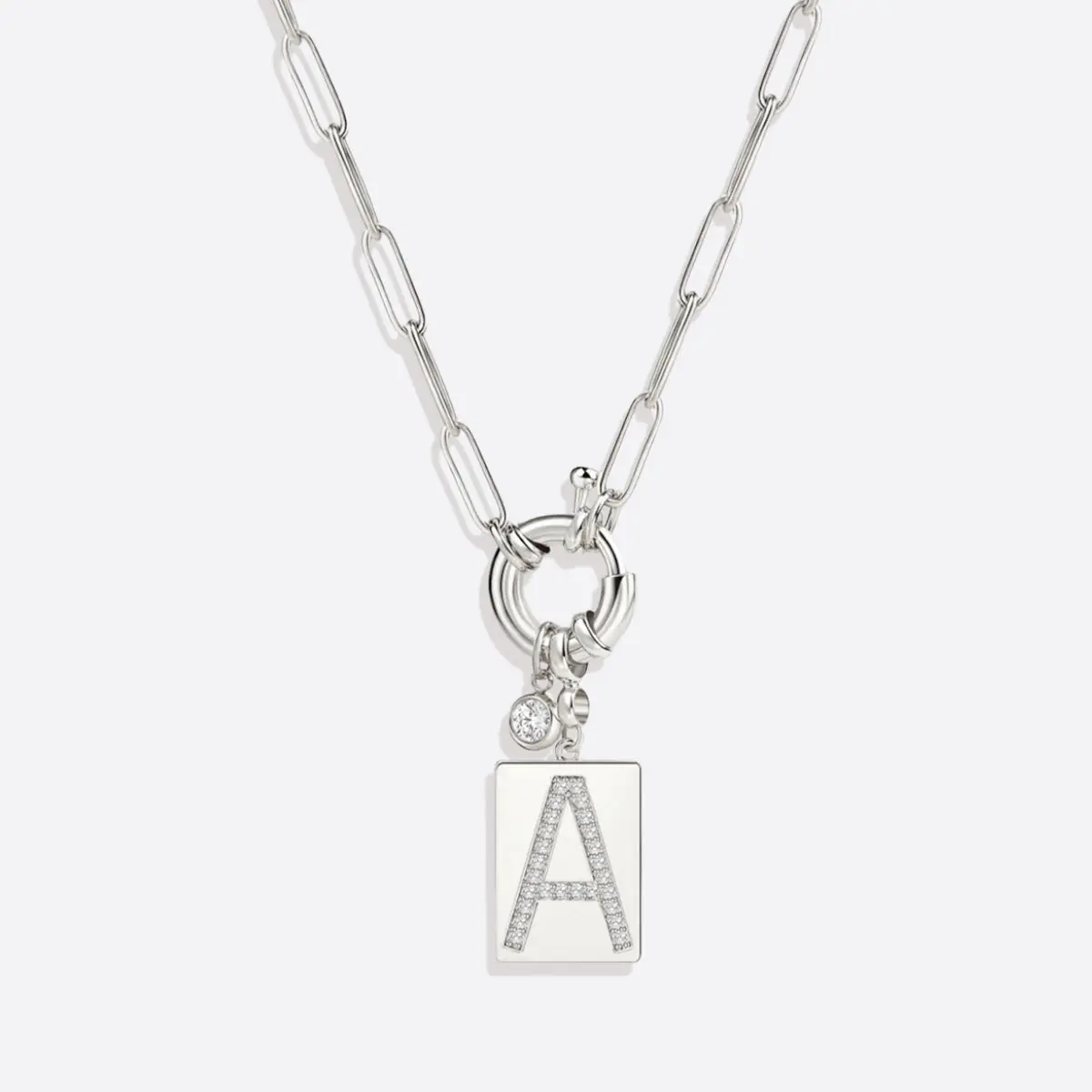 A personalized touch with a modern edge. This pave initial pendant sparkles against a sleek paperclip chain, creating a perfect blend of elegance and trend. Layer it or wear solo for standout style.