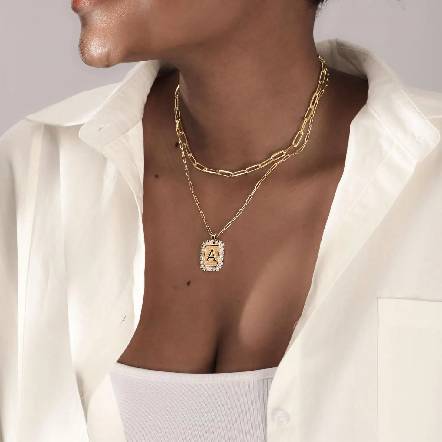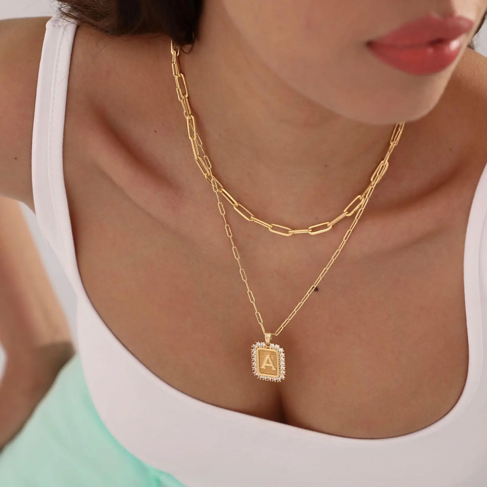 This Double-Layer Combination Initial Necklace is the perfect accessory for any woman or girl who loves to add a touch of personalization to their outfit. The necklace is made of Copper with 14-karat gold plating, making it durable and long-lasting.