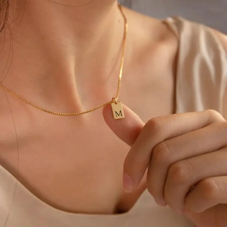 MATERIA: Our gold initial necklaces are made of 14K real gold plated brass. Gold box chain won't hurt your skin while remaining strong.