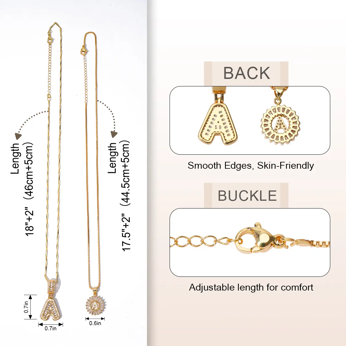 4 Exquisite Double-Sided Letter DesignThe pendant features smooth, polished edges on both sides, ensuring a comfortable, skin-friendly finish that won’t snag on clothing.Detailed craftsmanship adds a high-quality, sophisticated touch to the unique letter design.