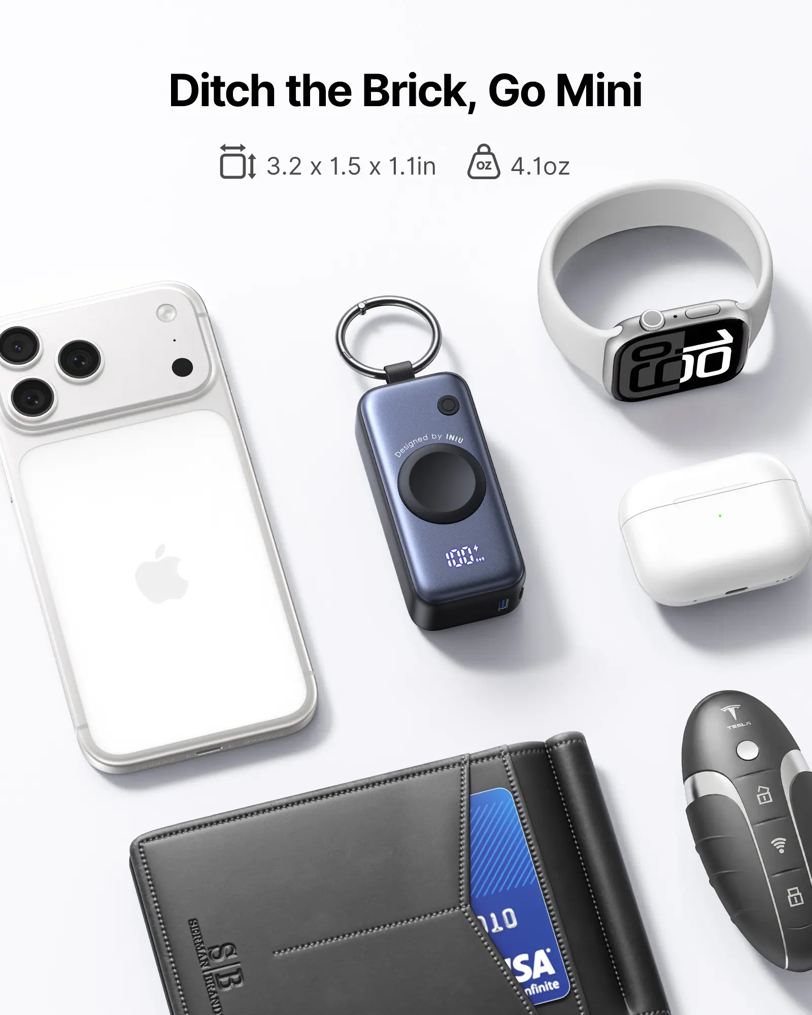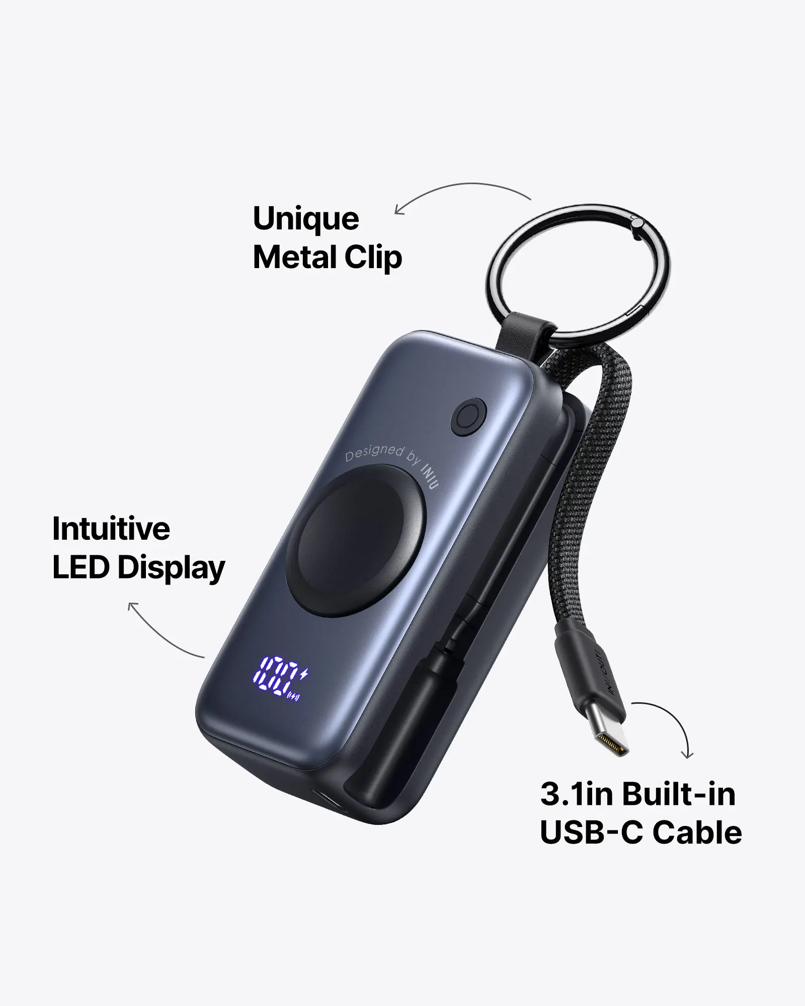 the perfect size to throw in my bag, pocket, or even hand on my belt loop. unfortunately, it’s only 5000mah (which is expected for its size) but it charges my phone and watch so fast. perfect to take on the road or when you’re shopping. plus the white aesthetic is just clean