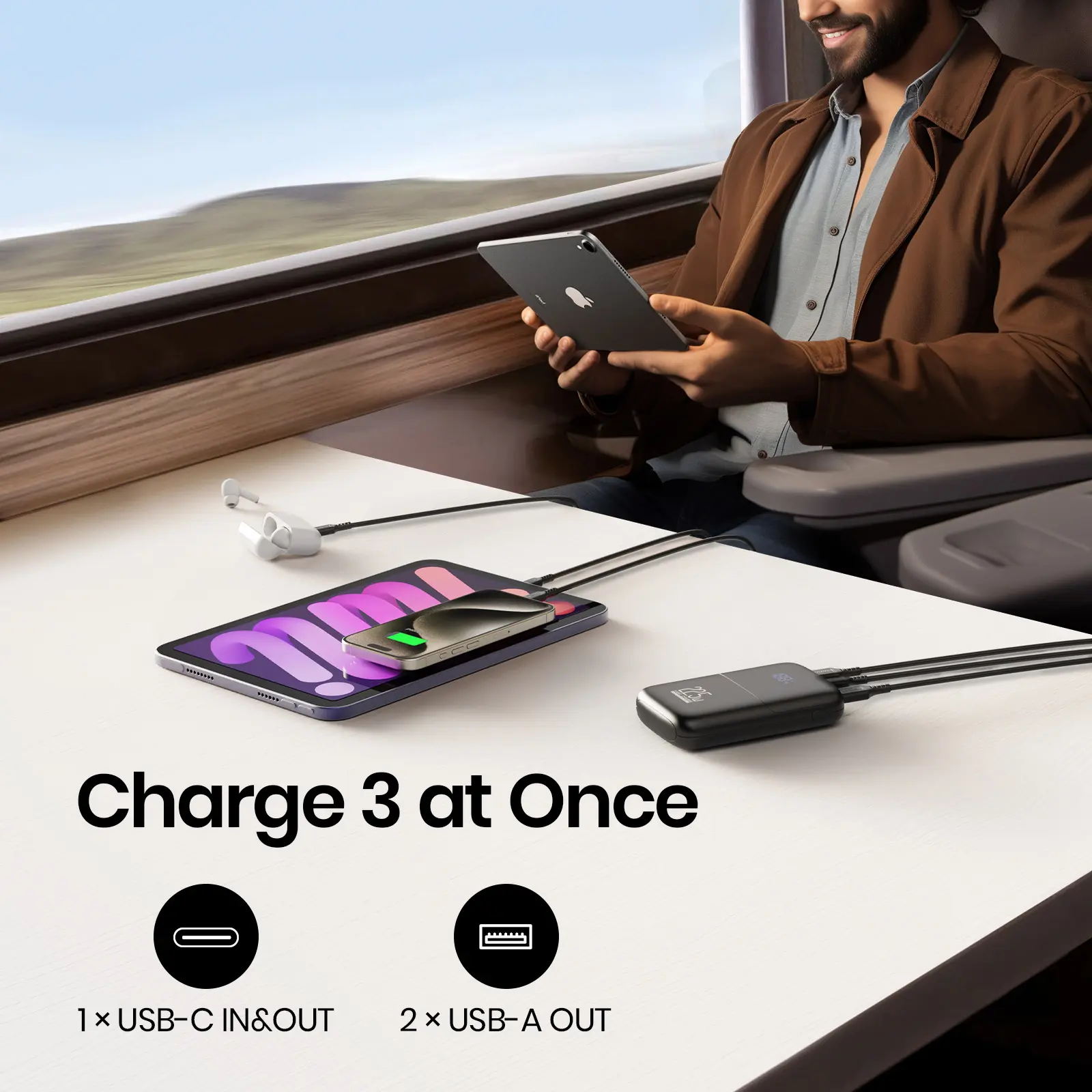 INIU PD10000 charges 3 devices simultaneously. Enjoy entertainment without worrying about battery emergencies.