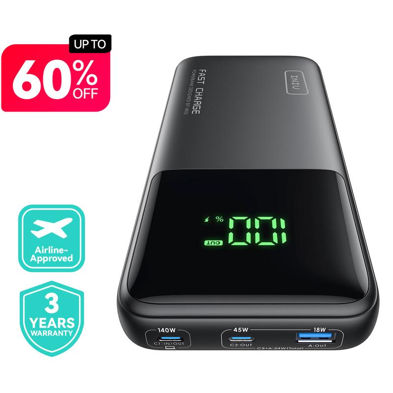 ·【What You Get】 140W PD3.1 power bank*1, USB-C to USB-C cable*1, travel porch*1, quick start guide*1, user manual*1, 30 days money back, industry-leading 3-year warranty and lifetime technical support.