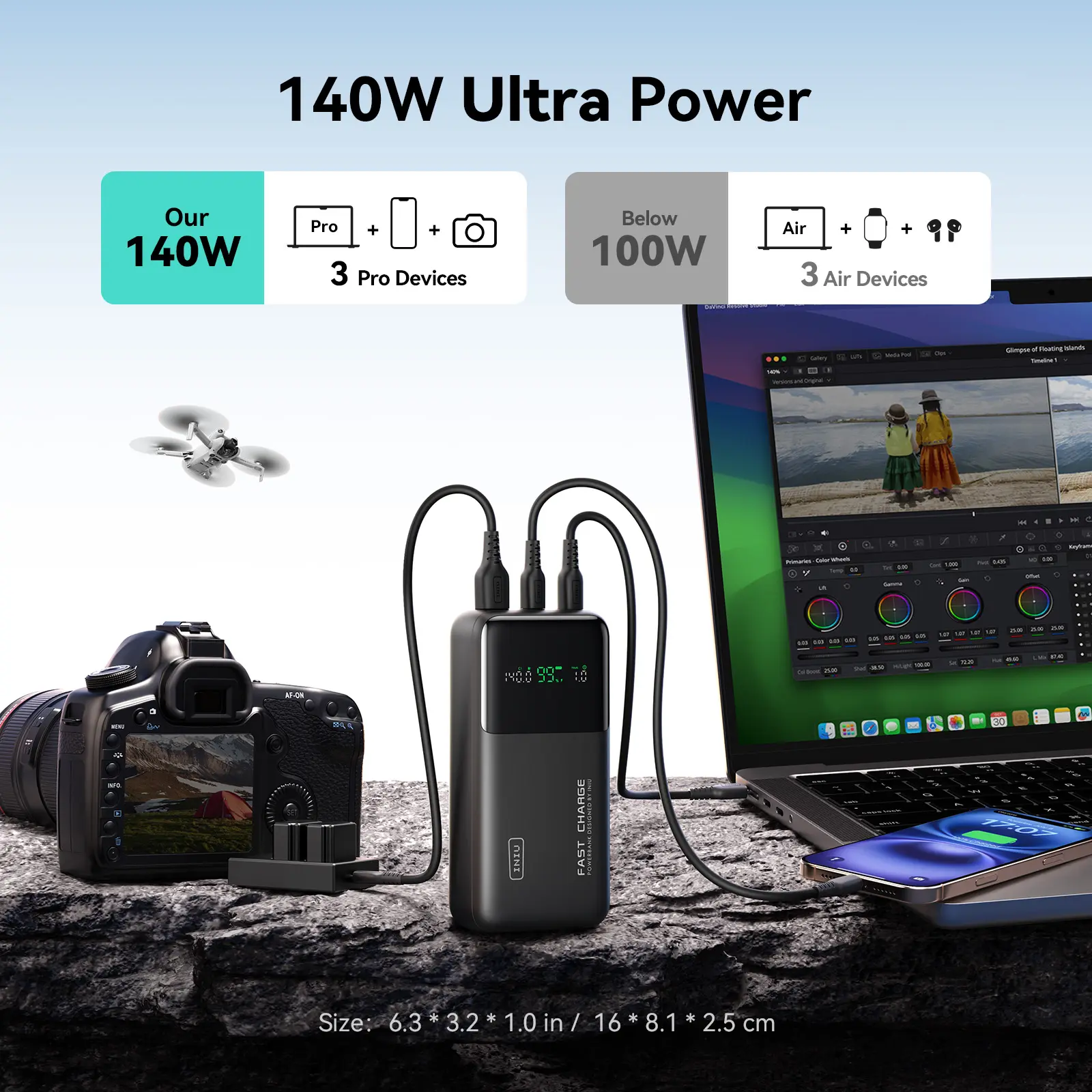 ·【140W PD 3.1 Super-Fast Charging】 While others struggle at 65W or even 100W, our 140W PD 3.1 PowerNova if fast enough to power up all high-power-demand devices like the laptops and SteamDeck. In just 30 minutes, you'll have a MacBook Pro 16" at 59%, SteamDeck at 57%, iPad Pro M2 at 64%, iPhone 15 Pro Max at 71%, and Samsung S23 Ultra at 75%.