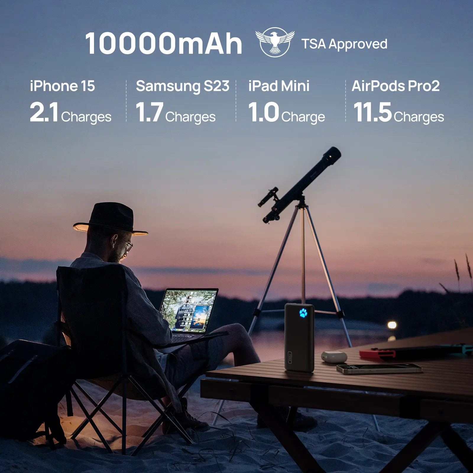 This is the best power bank I’ve ever tried!! It charges my phone faster than a regular charger for some reason and it has a pretty decent battery life because I have used it for 10 hours today and it hasn’t died yet. It comes with a silky case and charger. IT CAME IN 3 DAYS!!! Really sigma product