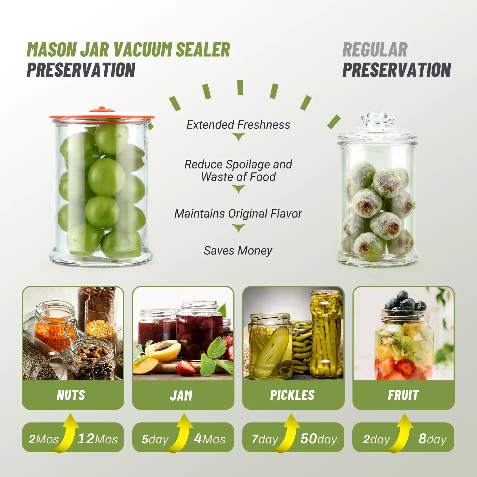 ·3-in-1 Mode: Suitable for regular jars, wide-mouth mason jars, and vacuum food storage bags.