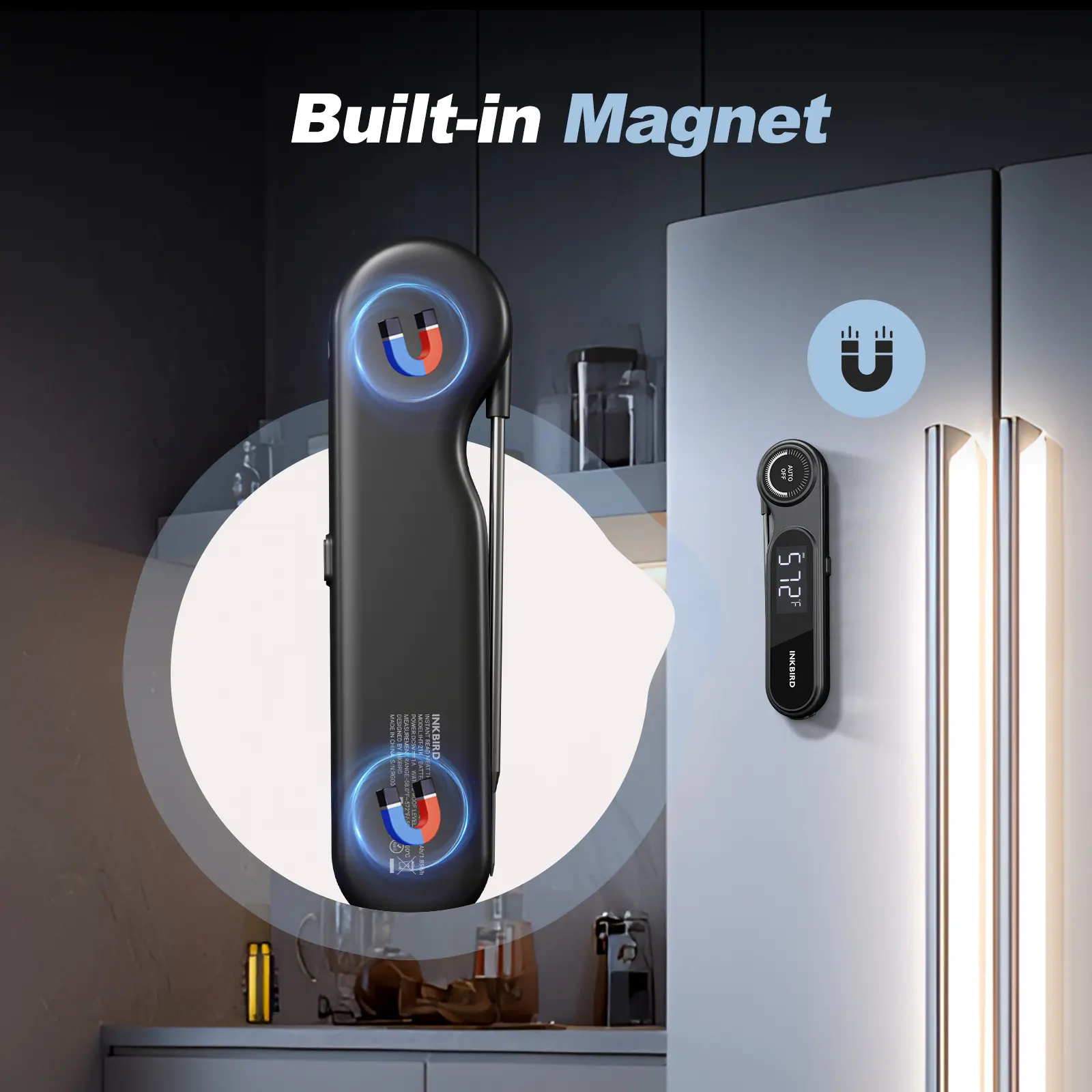 Clear VA LCD with 2 Strong Magnets: One key locks the temperature reading, allowing you to instantly understand the current food status. The premium VA LCD, sized 1.57*0.78inch/40*20MM, makes the temperature visible even in sunlight, and the two strong magnets on the back allow it to be attached to refrigerators for convenient viewing and storage