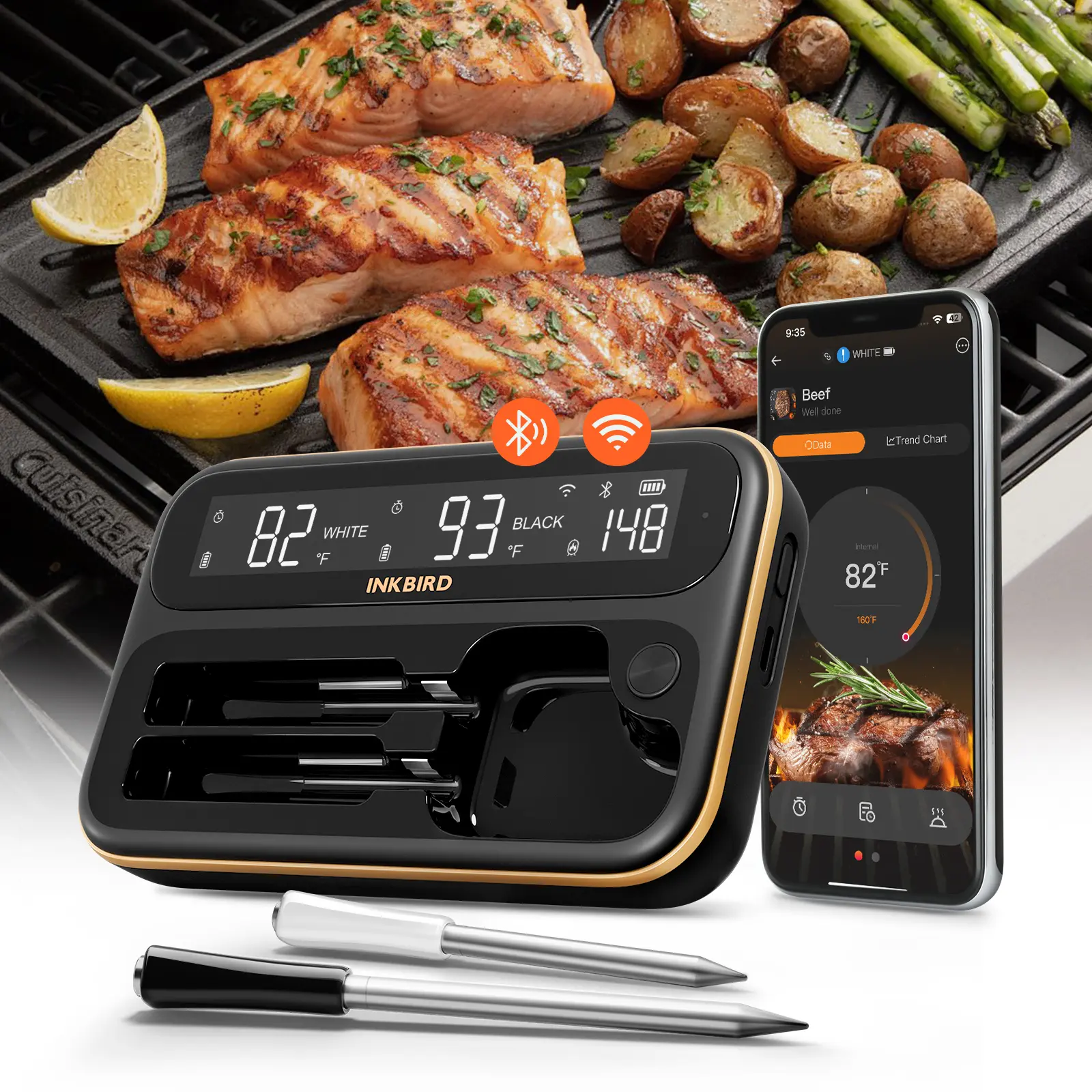 WiFi & Bluetooth Meat Thermometer INT-14-BW