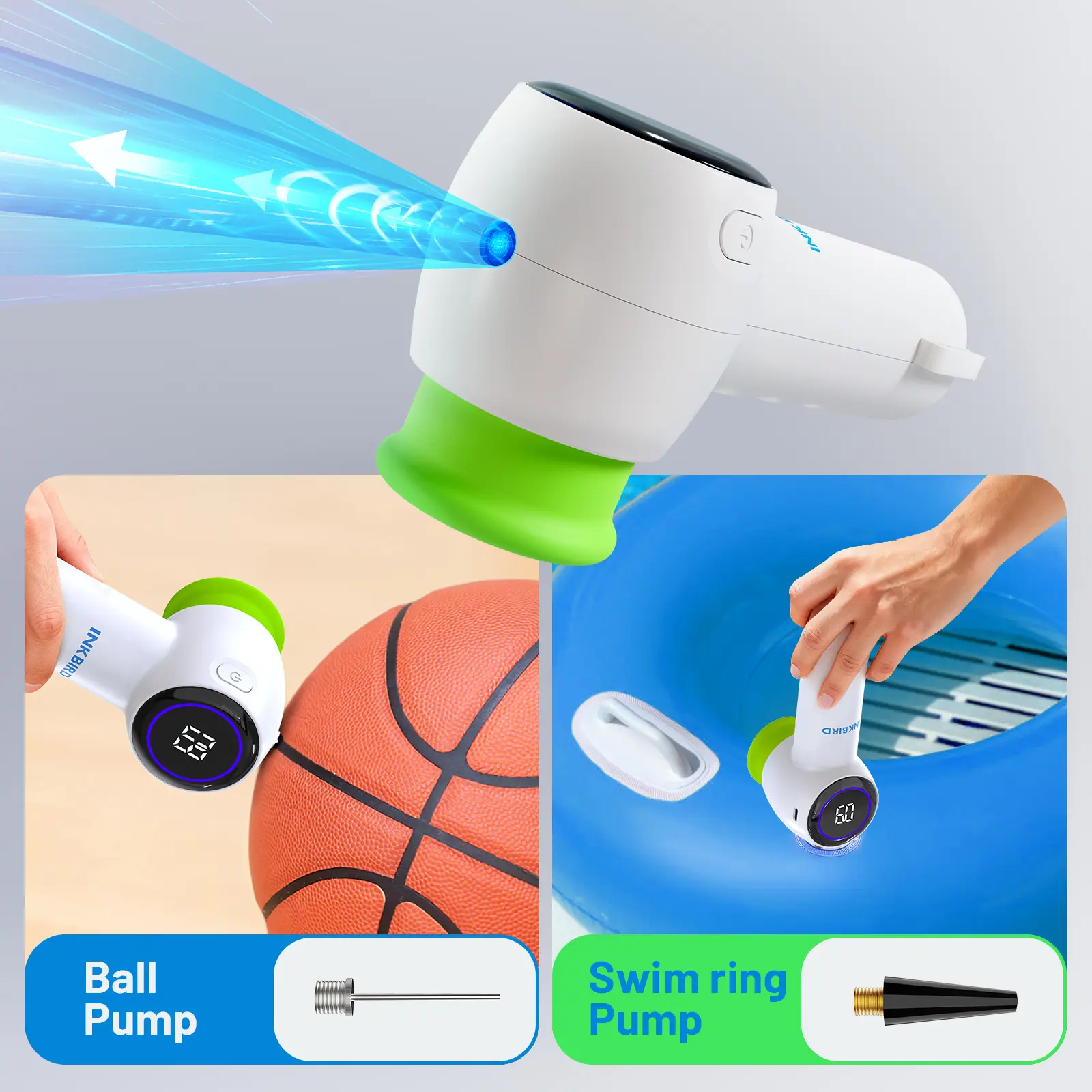 ·Additional Accessories: Comes with ball needle and air nozzle for inflating balls and swim rings.