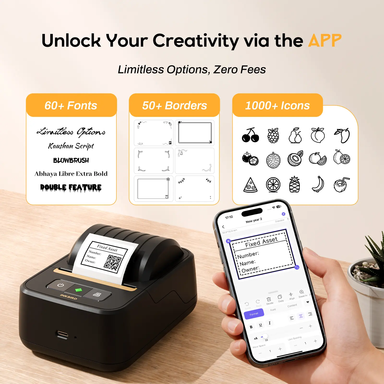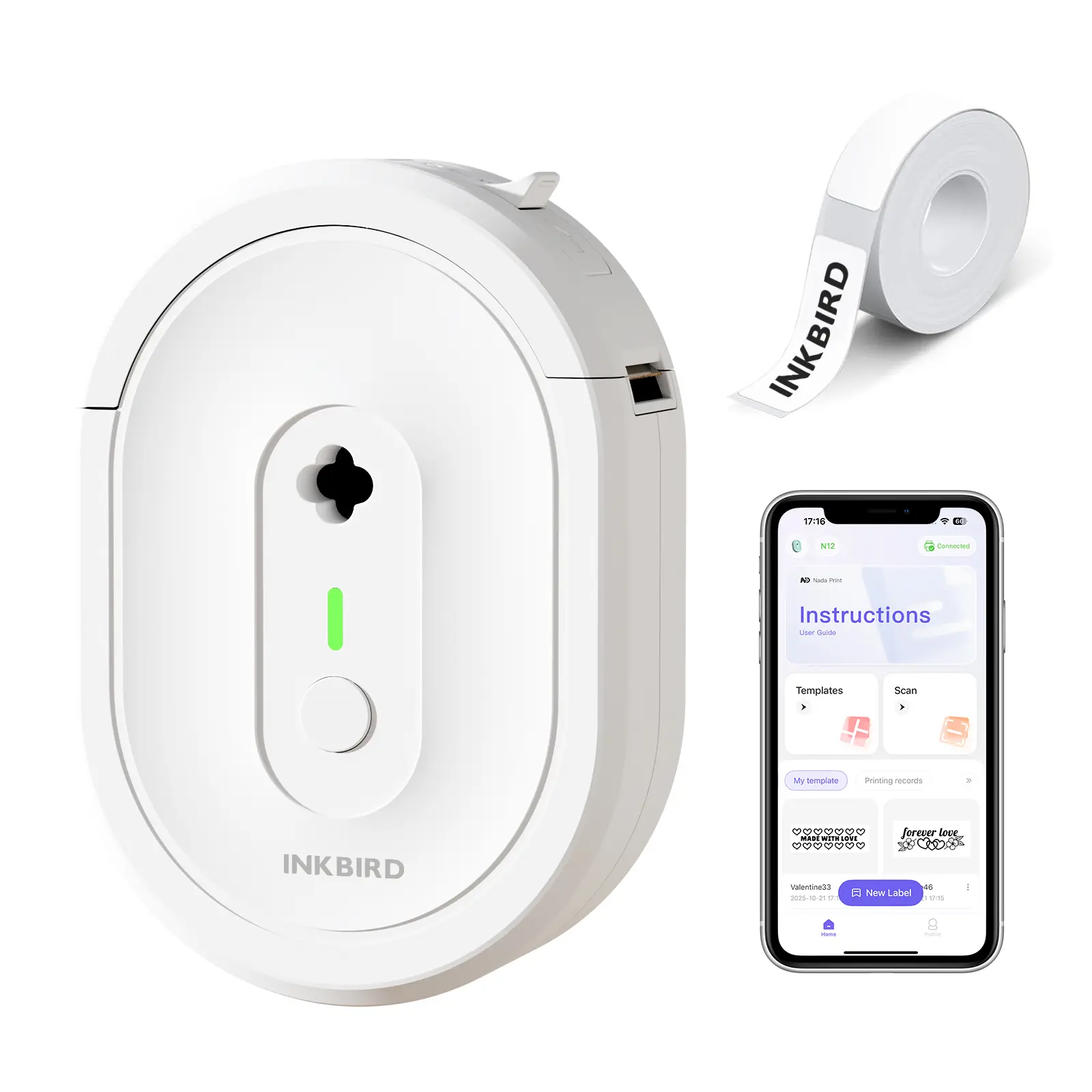 INKBIRD N12 Portable Label Maker Machine, Bluetooth Sticker Printer, Thermal Printing, Various Print Templates, Use with Smartphones and Tablets, Ideal for Home, School, Office