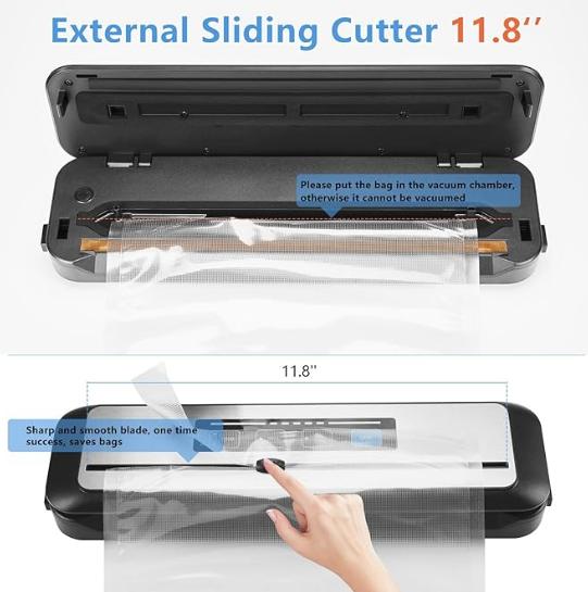 ·Vacuum Sealing: Effectively seals food items, preventing air from entering and preserving moisture.