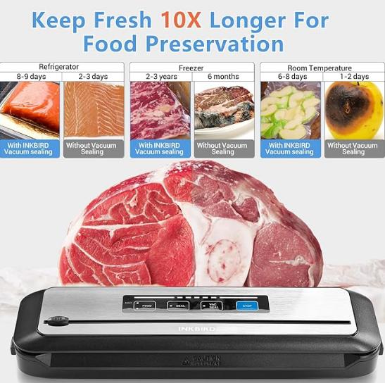 Enhance your kitchen with the Inkbird vacuum sealing machine, and enjoy the convenience and efficiency it brings to your food preservation tasks.