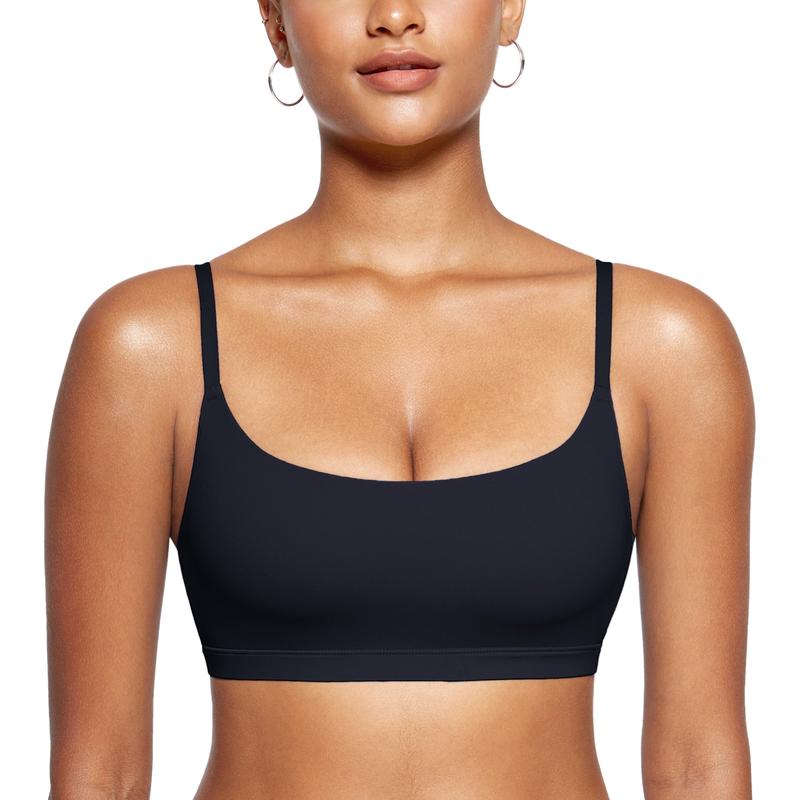 This Scoop Neck Bra is specially designed to offer a perfect blend of comfort and flattering silhouette. Double-layer soft and breathable fabric provides light support, while unlined and wireless design for a natural fit. Can be worn as a low-impact workout top or everyday bra.