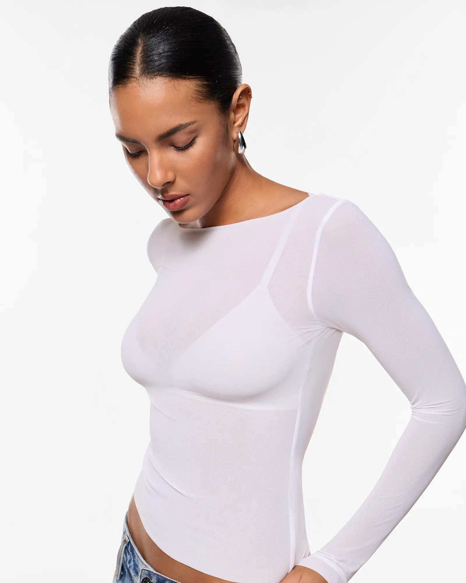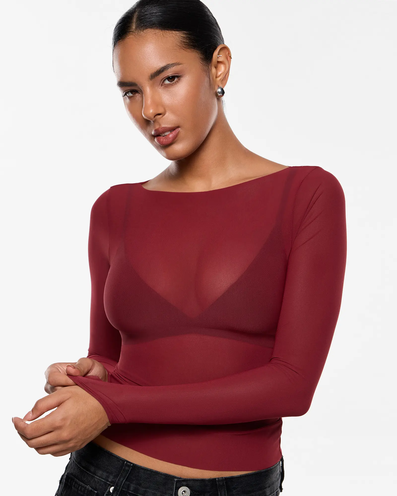 INLYRIC Women's Cosnufy Mesh Sheer Long Sleeve Tops