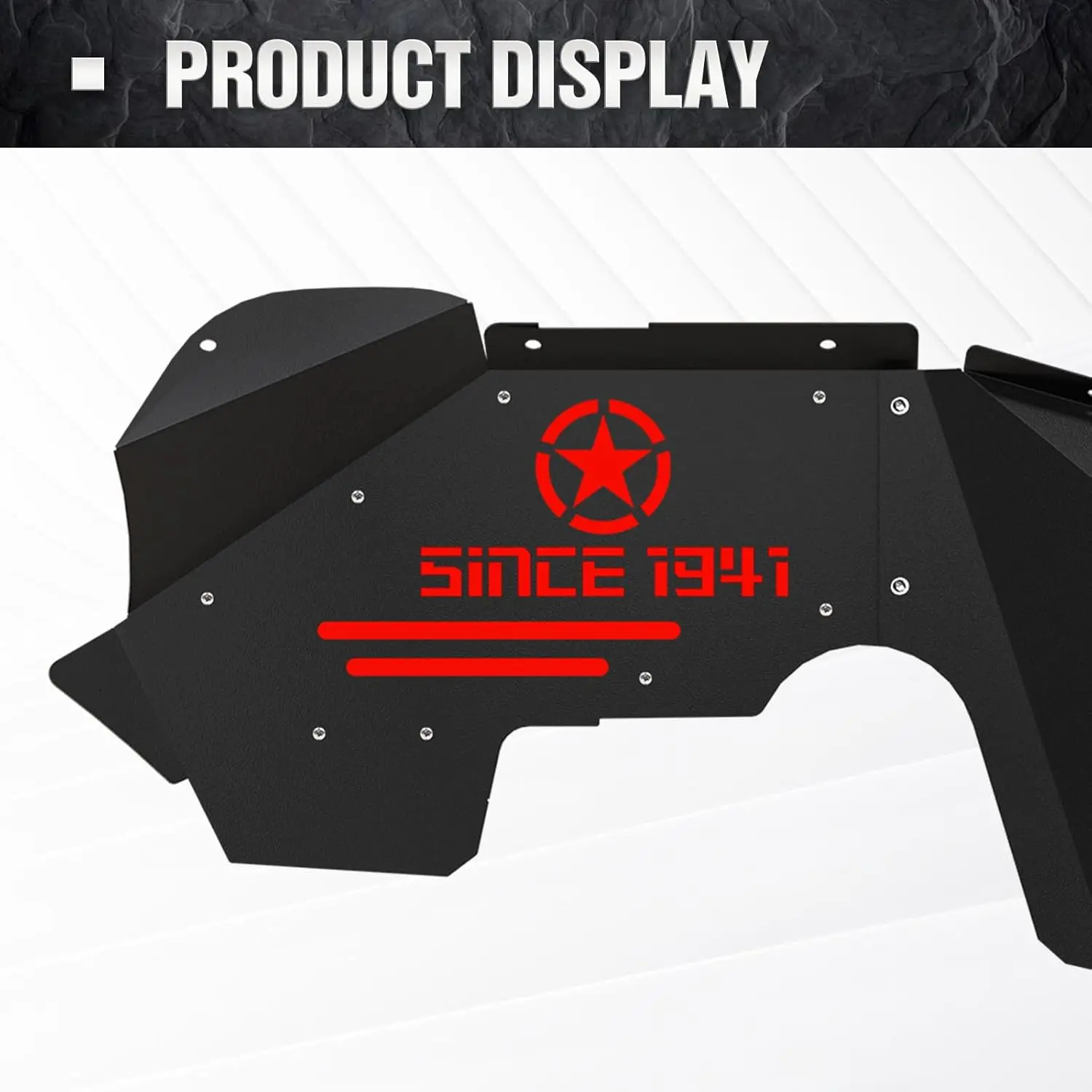 【Protection】: Front & rear fenders guards as an all-encompassing shield for the engine and protect the wheel well from off-road elements such as sticks, gravel, mud, snow, sand, and more. They provide complete protection for your vehicle while driving in harsh off-road environments.