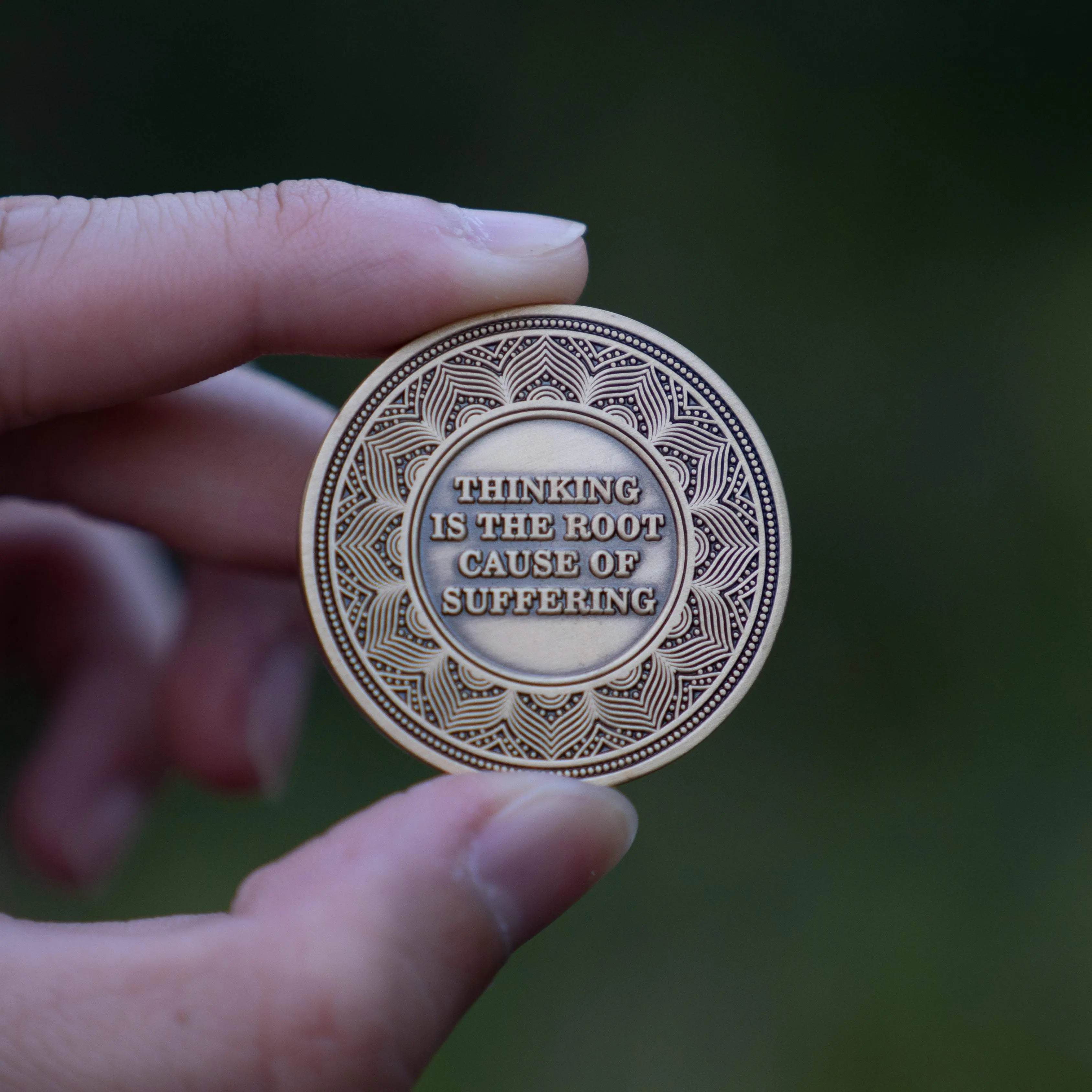 Thank you for having this coin made! It's beautifully designed. I purchased a leather case for it so that I can carry it with me everywhere I go. I often take it out the case and hold it to remind me to stop the incessant thinking and it has helped me to do this. Thinking is the root cause of suffering and it has plagued me for many years but now, thanks to your book and this beautiful coin, I am able to control it more fully. May Jehovah God bless you for your work and your efforts to help others like me. 😊