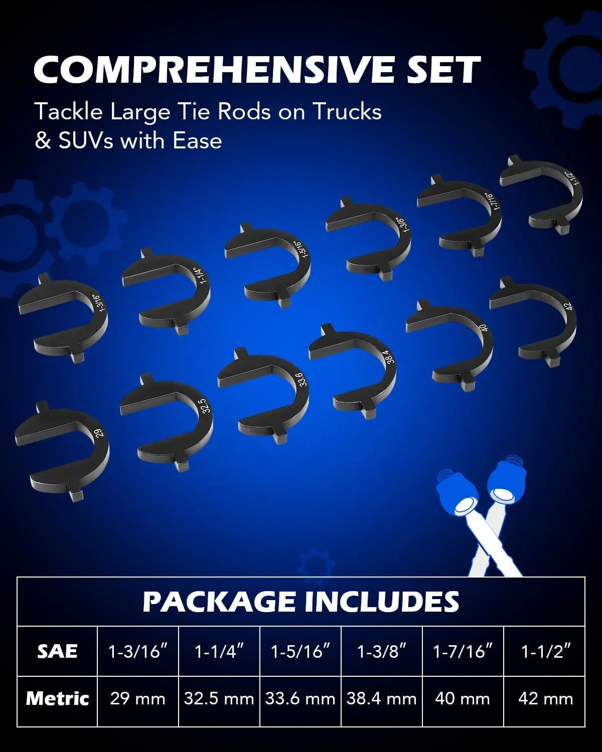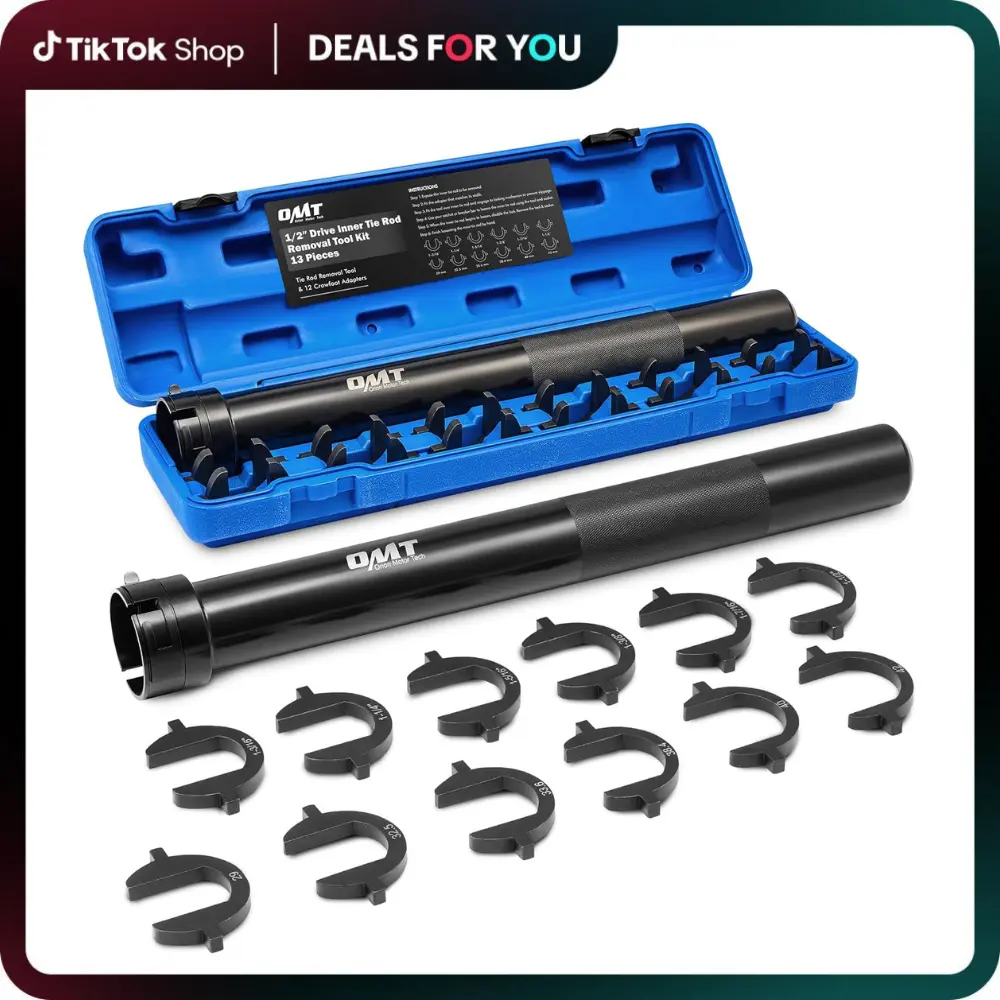 INNER TIE ROD REMOVAL TOOL: This Orion Motor Tech inner tie rod removal tool set lets you remove and install inner tie rods without removing the rack and pinion; the 1/2 Inch drive tube handle with a 2.1 in inner diameter allows servicing on small cars, pick-ups, and SUVs