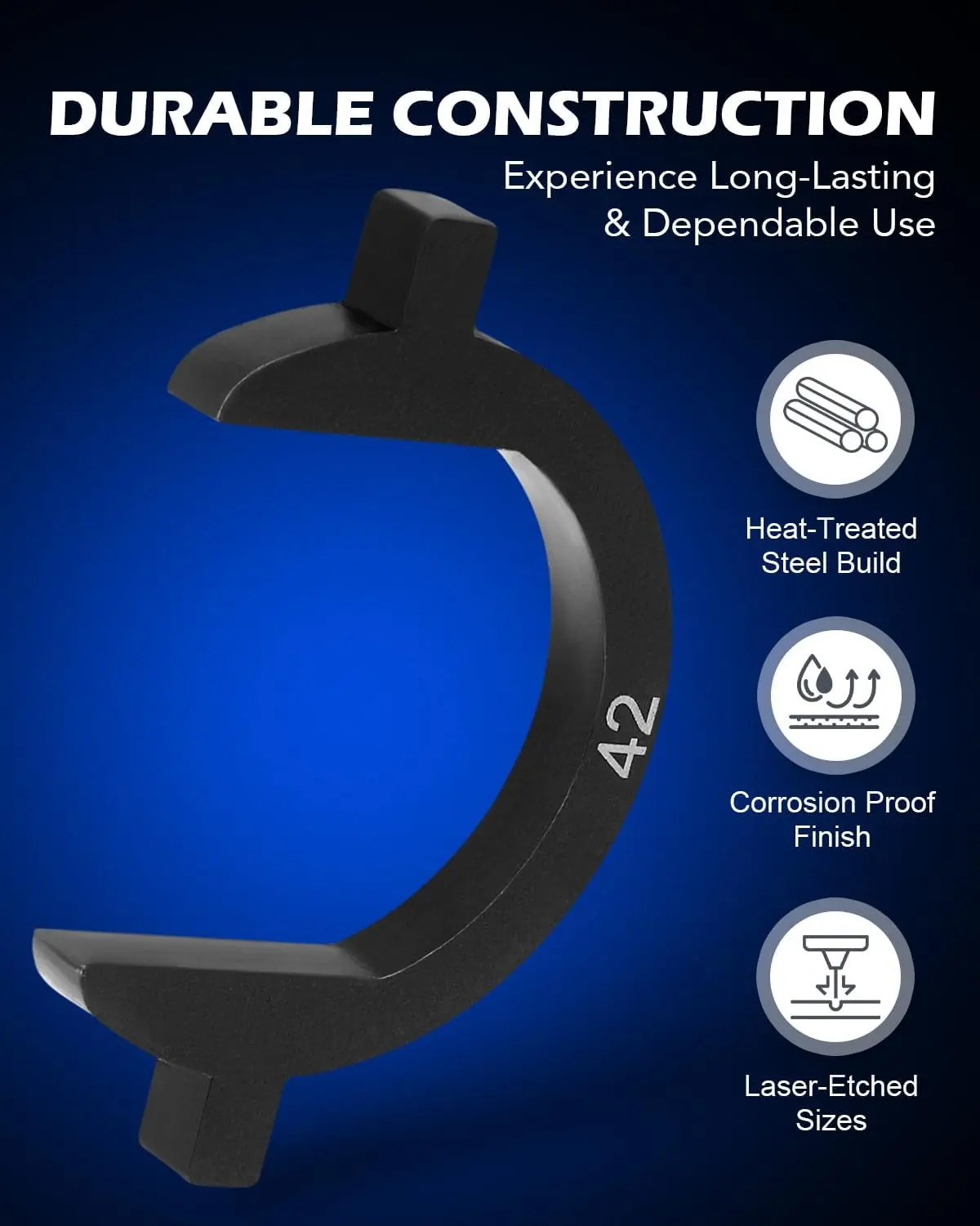 12 CROWFOOT ADAPTERS: The 12 crowfoot adapters cover most common SAE and metric sizes of 1-3/16", 1-1/4", 1-5/16", 1-3/8", 1-7/16", 1-1/2", 29 mm, 32.5 mm, 33.6 mm, 38.4 mm, 40 mm, and 42 mm
