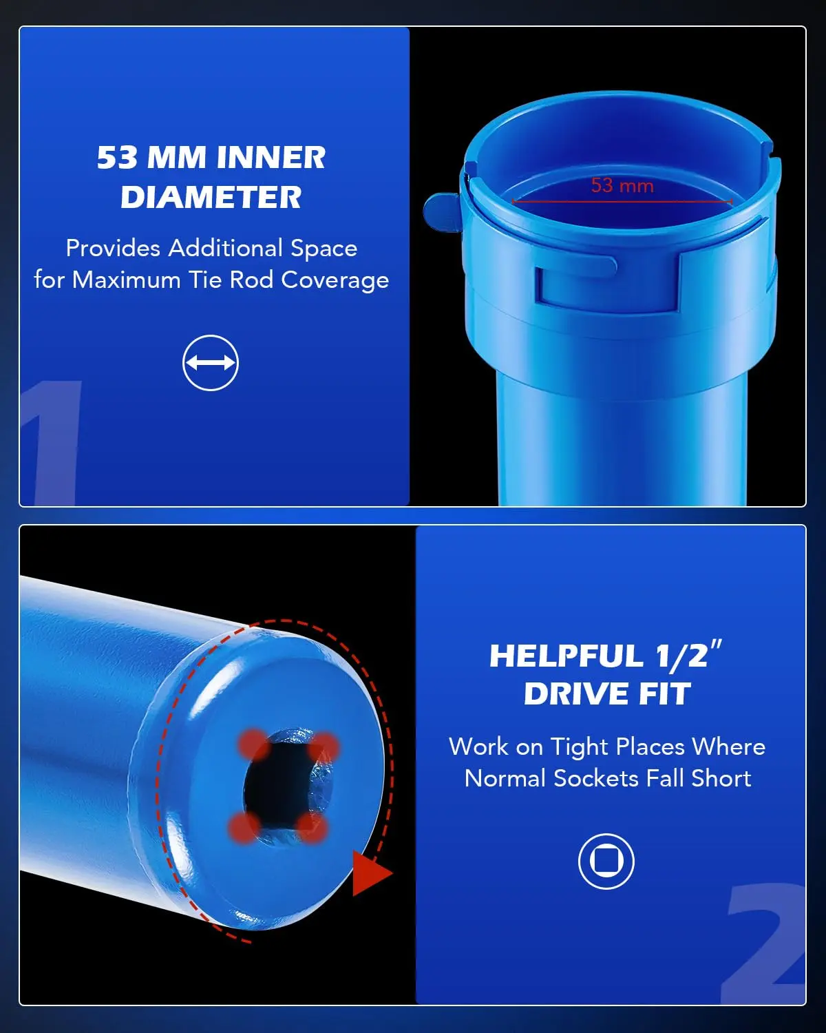 Our tie rod tool is compatible with 1/2" drive wrenches and helps you get at parts where normal wrenches just can't fit; 20 inches long, its knurled grip keeps you in total control at all times