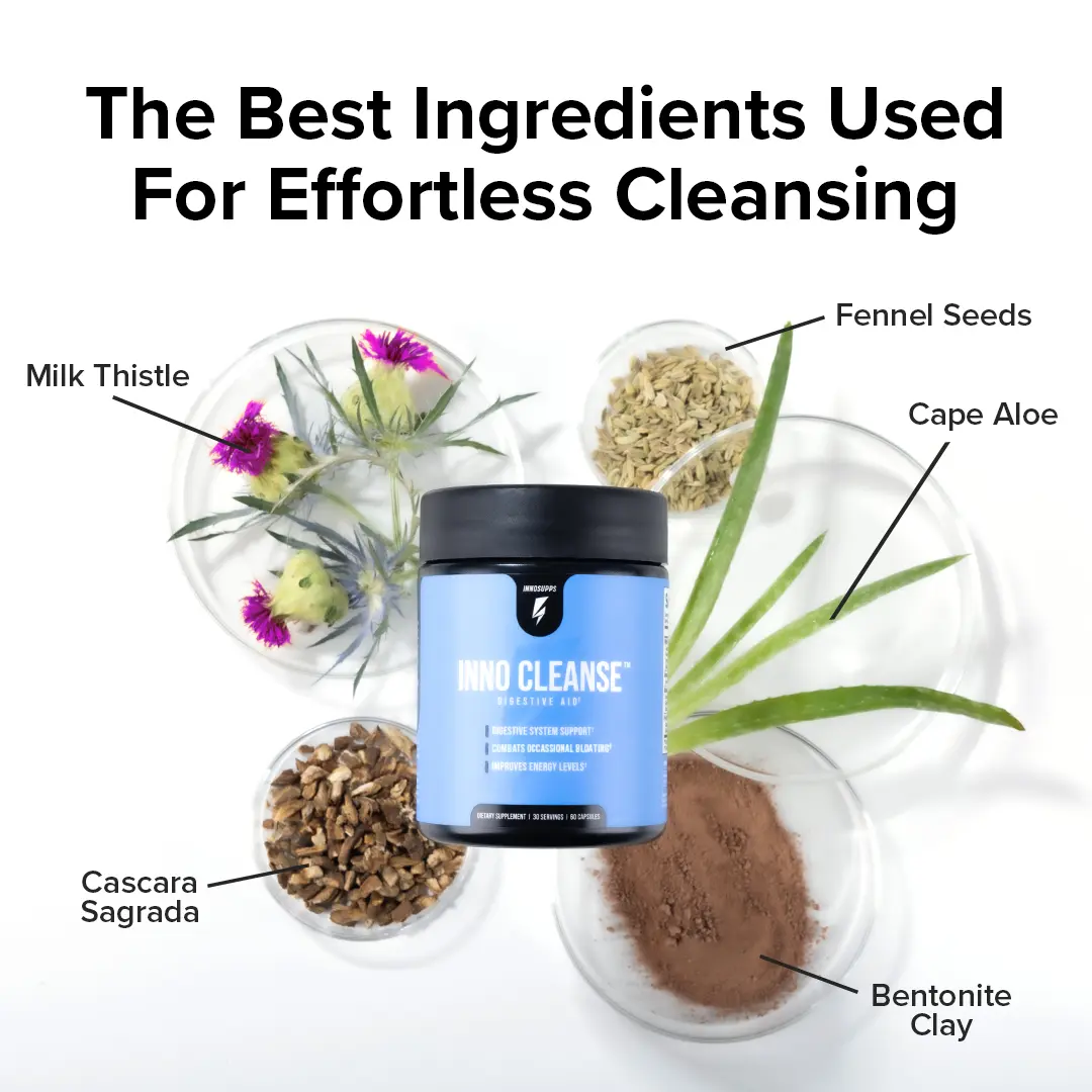 Inno Cleanse is a gentle, 14-day formula made with natural herbs and plant-based ingredients. It supports gut comfort and regularity. Our vegan, gluten-free, and sugar-free capsules fit easily into any routine, helping you feel light, balanced, and ready for the day.