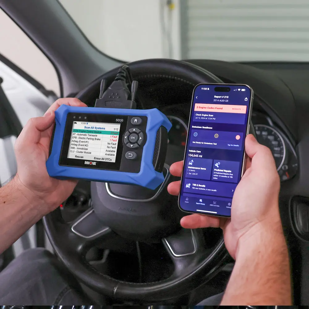 The INNOVA SD35 is a tablet-based OBD2 scanner for advanced diagnostics. It reads and clears check engine, ABS, SRS, and TPMS codes. Test your car battery and alternator to prevent failures. Ideal for 1996+ cars and trucks.