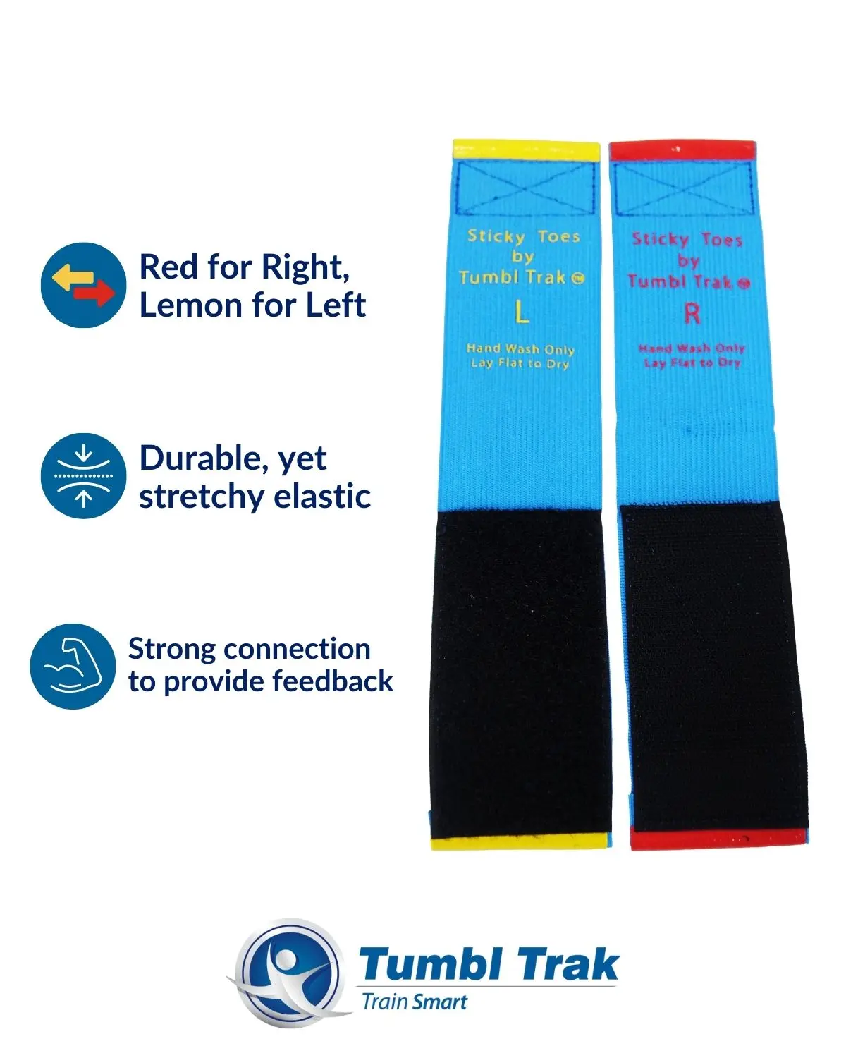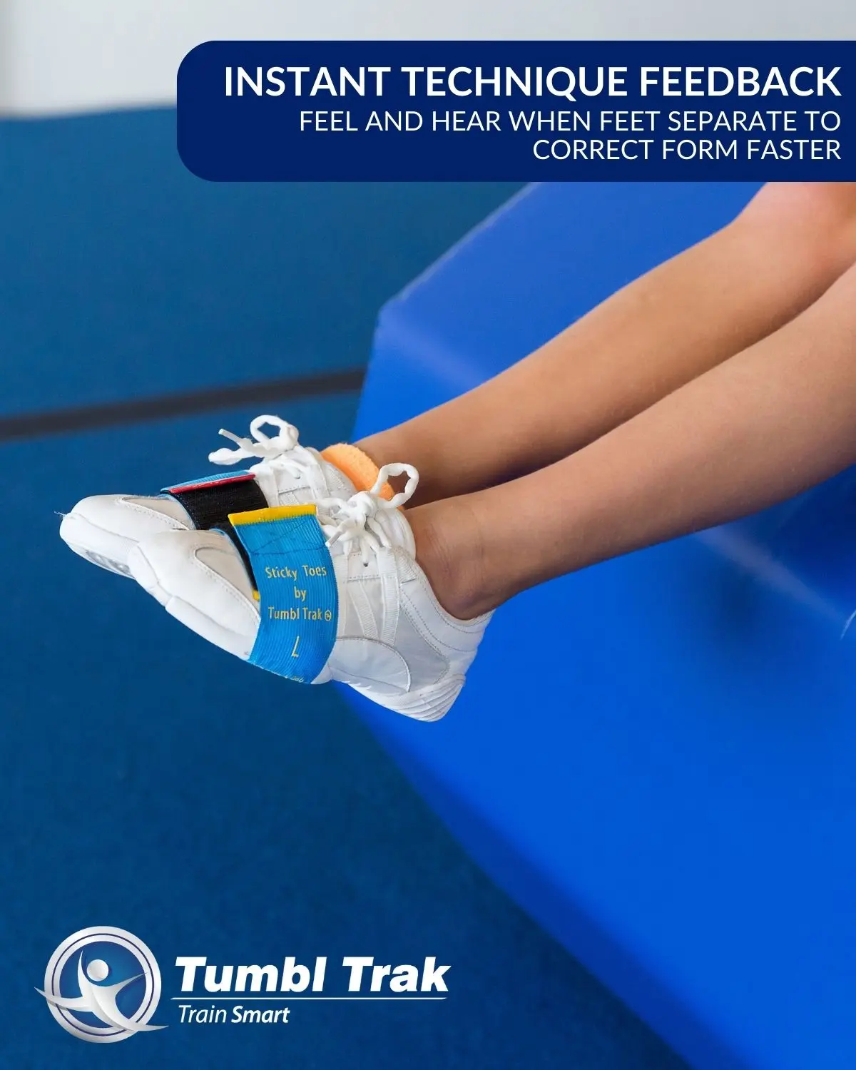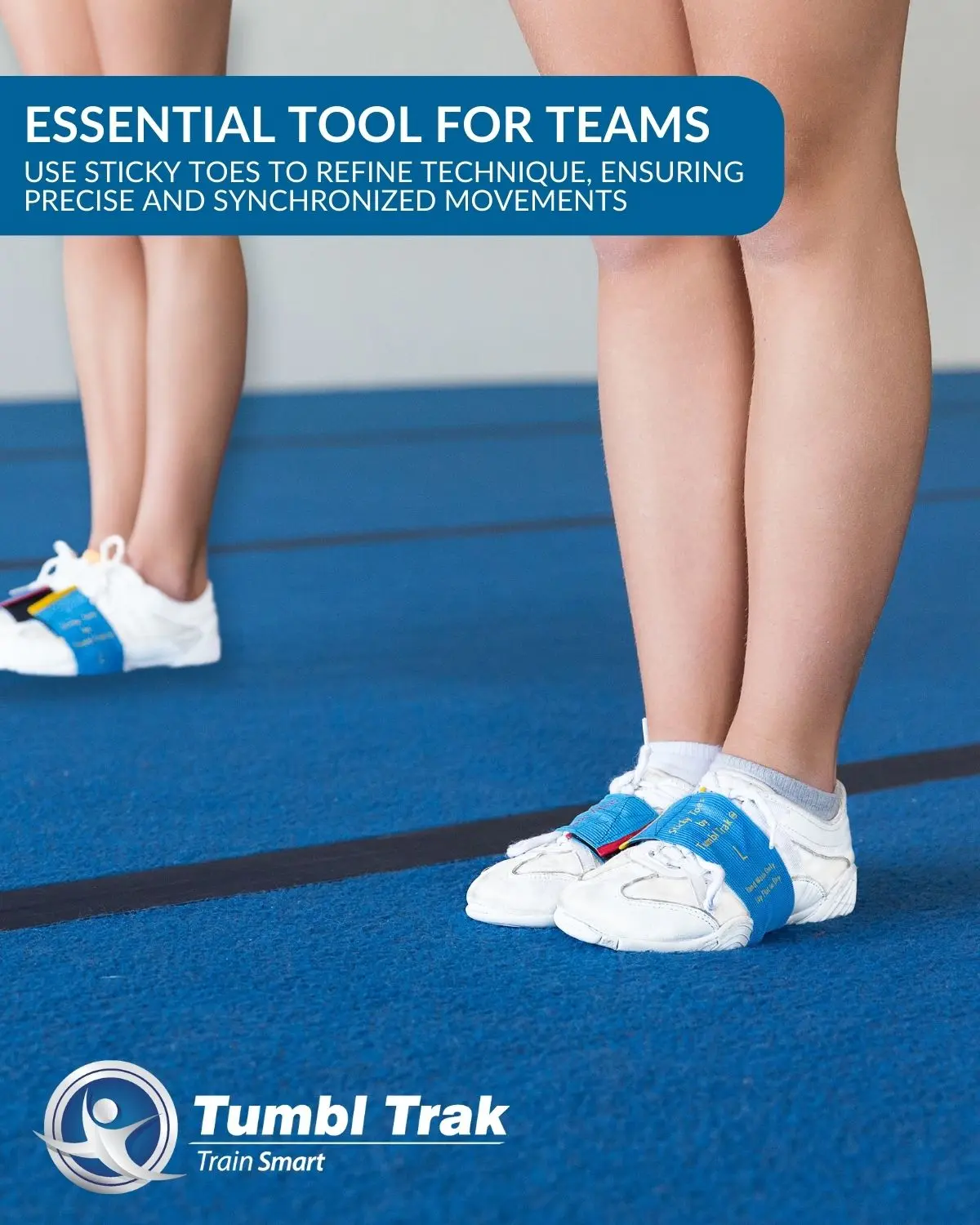Sticky Toes is an innovative training tool designed for gymnasts, cheerleaders, and dancers. It helps keep feet together with two elastic bands and Velcro on each end. The Velcro sticks together safely and pulls apart, providing instant feedback. Perfect for multiple activities, it gives athletes instant feedback when their feet come apart.