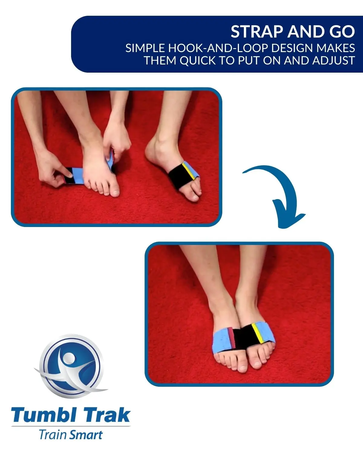 ·The straps fit around cheerleaders' shoes or around young athletes' bare feet.