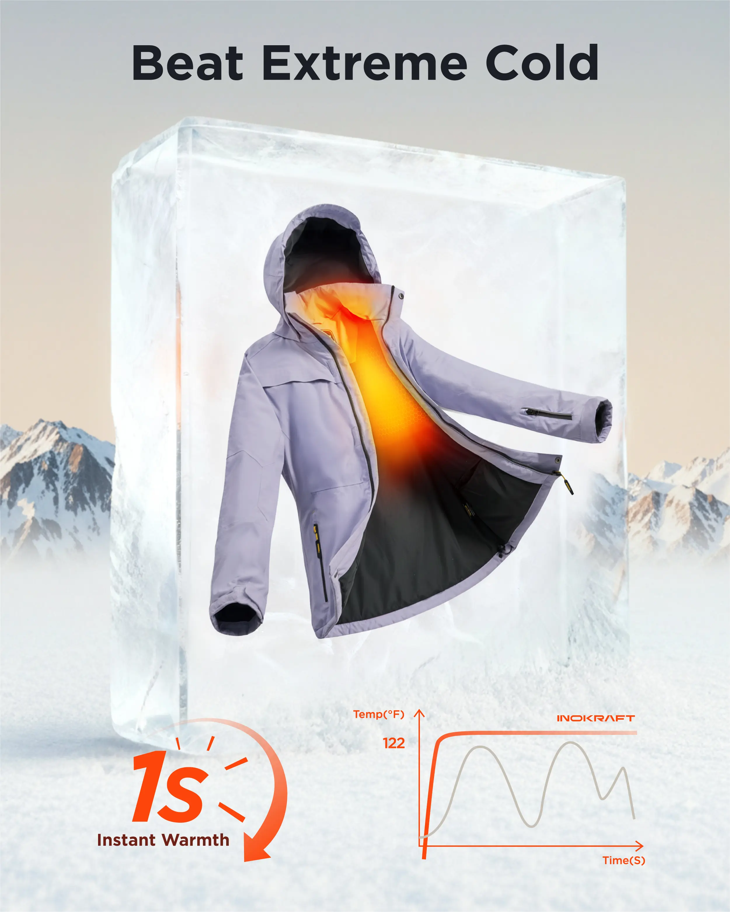 Powered by two UL/CE/FCC-certified 4000mAh Li-ion cells, this jacket is engineered for extreme cold. Tested to perform reliably down to 14°F, the cells are swappable for extended runtime. The USB-C port doubles as a power bank for your phone or other InoKraft devices.
