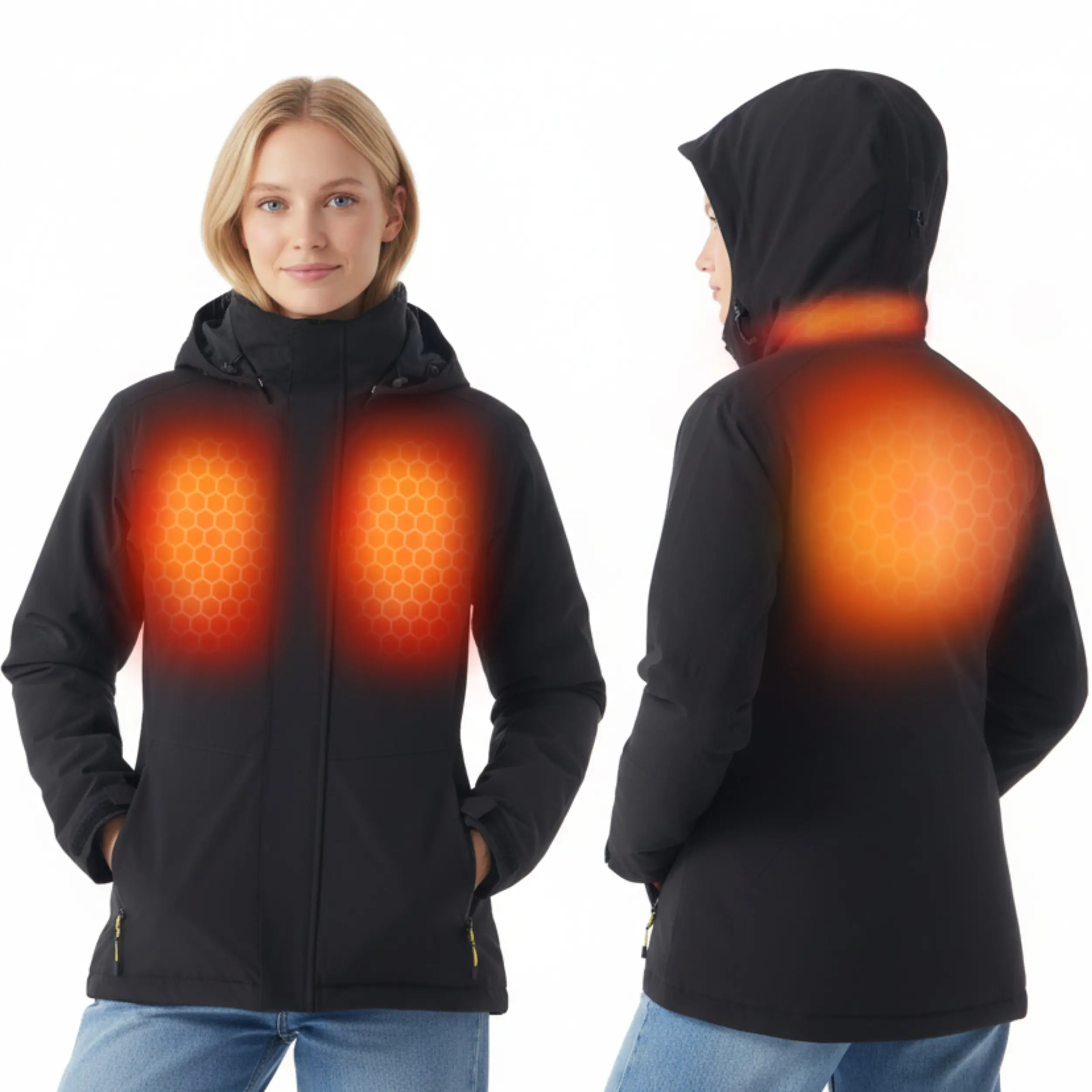 The jacket features a wind- and rain-resistant shell with double storm flaps and YKK zippers. It includes 7 practical pockets: chest card slots, hand pockets, an inner mesh pouch, a zippered battery pocket, and a sleeve pocket. Keep essentials organized and within reach.