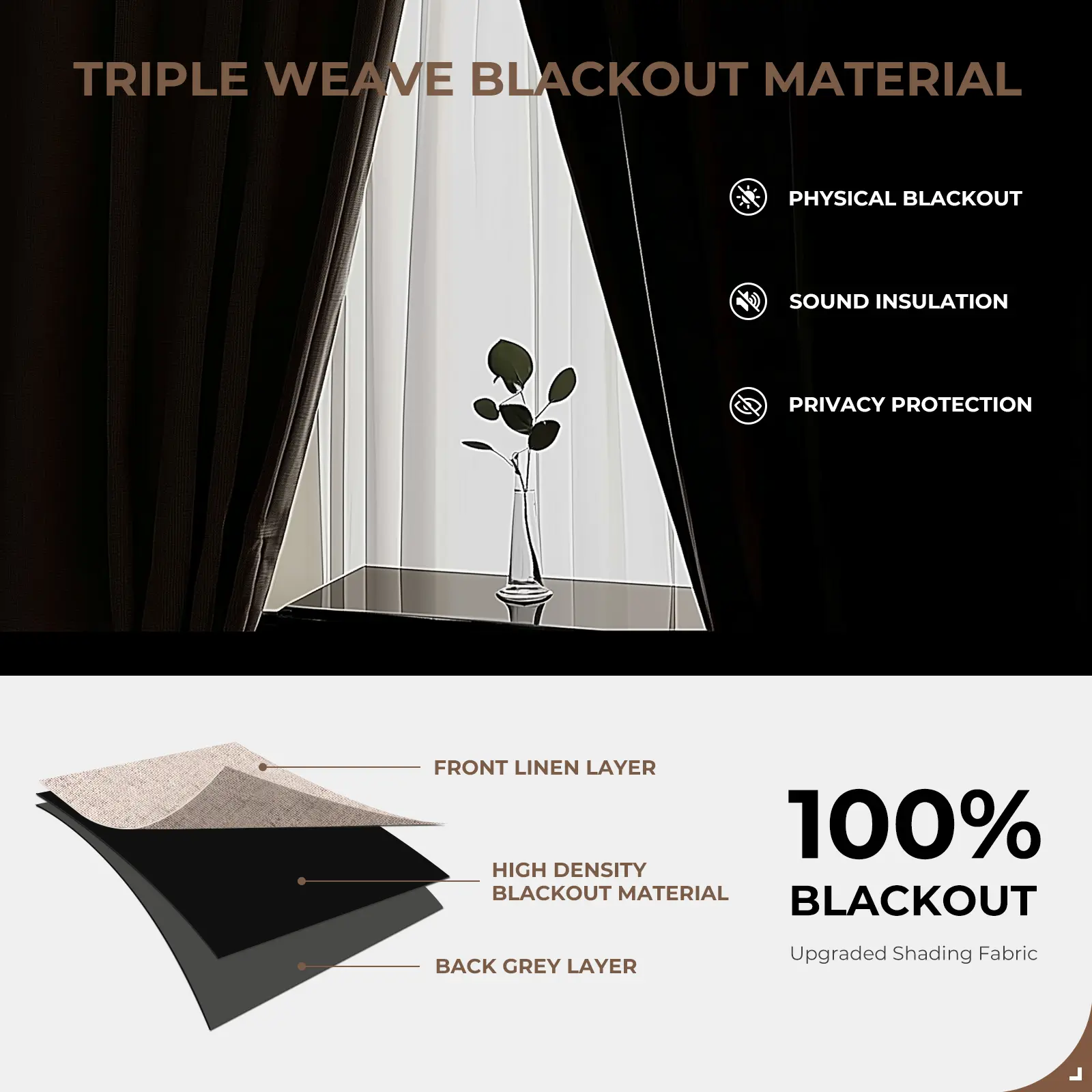·【Blackout Effect】Blackout curtains. Our linen curtains add blackout lining, offer you a real dark room. Perfect for toddlers sleep longer and daytime naps; Nightshift workers will have a good sleep even at daylight; Light sensitive sleepers can also wake up naturally and feel well rested.