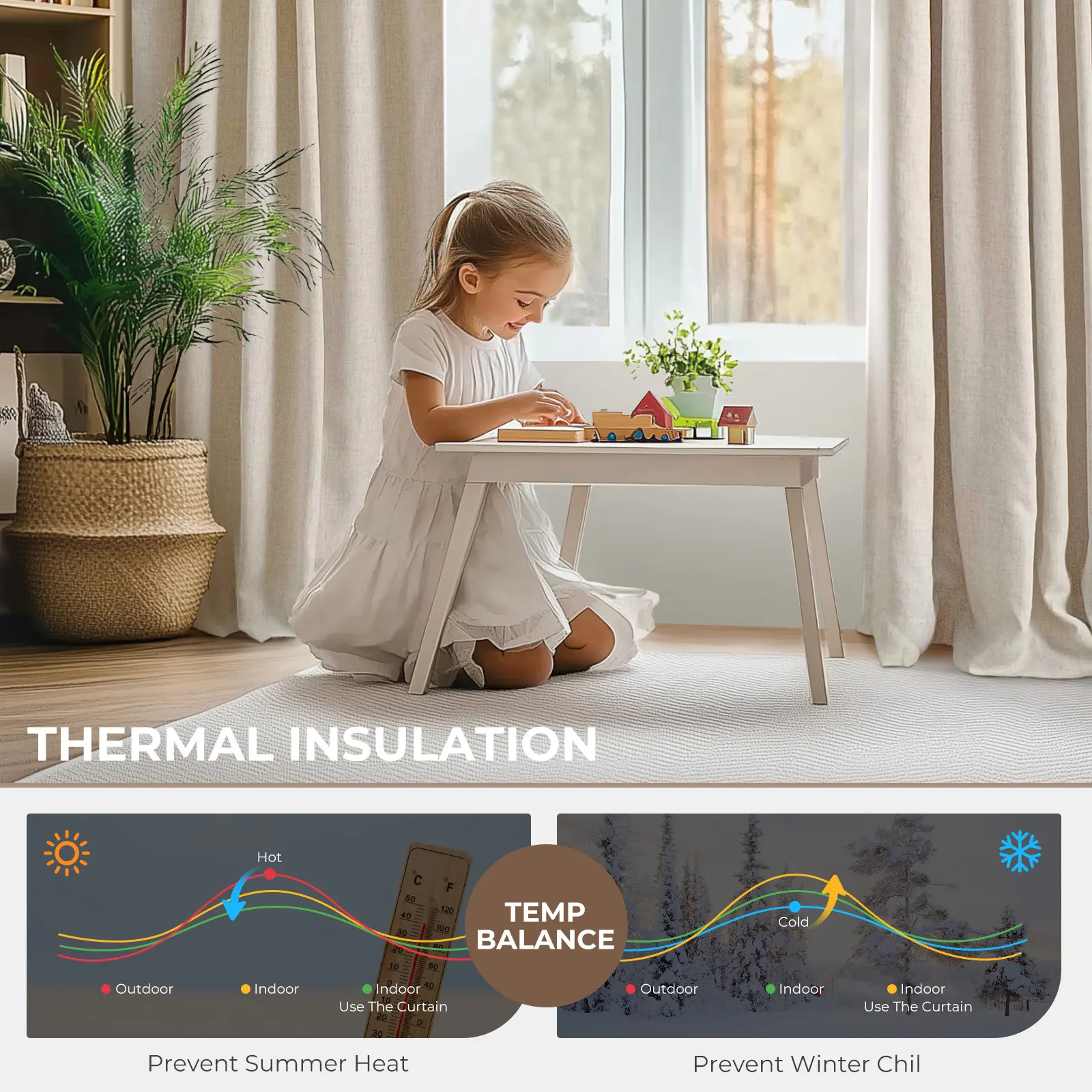 ·【Thermal Insulation】With the grey liner backing makes curtains block out the heat and cool air while sunlight blocking, also have the function of dampen noise from outside. Provide a more comfortable environment for your room.