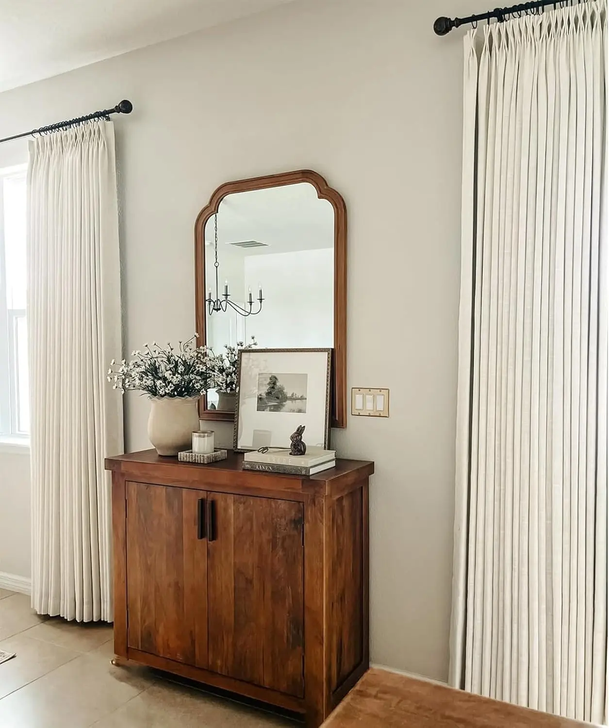 I’m obsessed with these gorgeous pinch pleated curtains which elevate the entire space! I got the natural color!#inovaday #blackoutcurtains #pinchpleatcurtains #homedecor #budgetfriendly