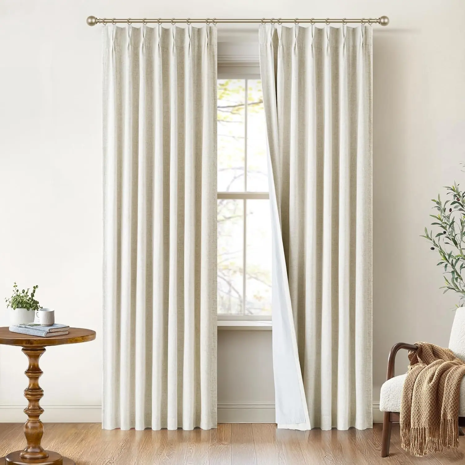 I can't believe I found the pinch pleat ones! Upgrade your home too with this 2pack of gorgeous linen black out curtains. Perfect for brightness and temperature control while giving your home an elevated look. #homedecor #pinchpleatcurtains #blackoutcurtains #tiktokshophome #homehacks