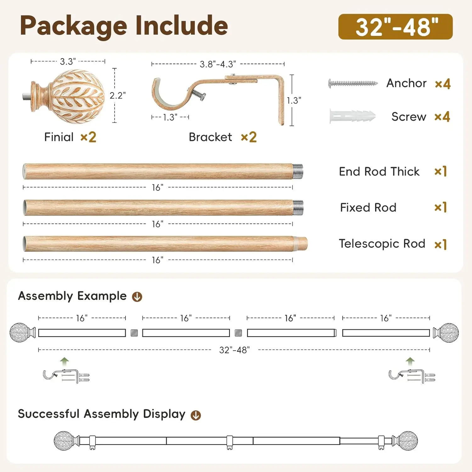 ·HAND-PAINTED TEXTURES: Each finial is crafted from durable resin and carefully hand-painted to highlight the olive leaf pattern. The rod undergoes rigorous salt spray testing to ensure a lasting finish and consistent quality. This design blends nature-inspired aesthetics with thoughtful craftsmanship, adding character and refined detail to your home décor.