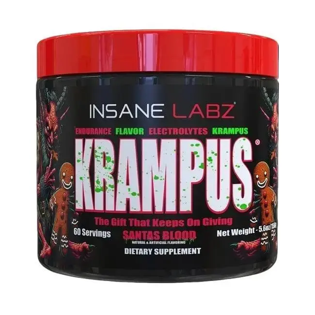 KRAMPUS wants your electrolytes — and he’s taking them one sweat-soaked drop at a time. This unholy 60-serving electrolyte formula replaces what the winter grind steals from your body: sodium, magnesium, chloride, and enough Vitamin B12 to resurrect Santa’s entire reindeer team. Every scoop hits fast, keeps cramps away, and fuels endurance — whether you’re in the gym, on the field, or outrunning the horned demon currently licking his claws on the label. 🩸 WHY YOU NEED KRAMPUS Because dehydration isn’t scary — it’s pathetic. You deserve better than watery sports drinks and bargain-bin powders made by elves in cheap aprons. KRAMPUS is: Stronger (B12 jolt + real electrolyte dosing) Longer lasting (60 servings!) Tastier (SANTA’S BLOOD and SANTA'S HELPER FLAVOR — sweet, twisted, holiday candy vibes) Way more collectible and badass than anything on the shelf This is hydration with attitude — the only electrolyte product evil enough to sit on the Insane Labz throne. 🎁 THE GIFT THAT KEEPS ON GIVING Whether you’re hitting high-intensity workouts, working long shifts, gaming until sunrise, or trying to survive holiday family gatherings… KRAMPUS keeps your stamina up, your muscles firing, and your sanity intact. One scoop. One demon. One holiday season you’ll never forget. KRAMPUS™ — Hydrate or Be Taken. #electrolytes #hydration #krampus