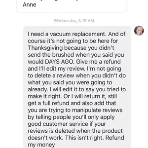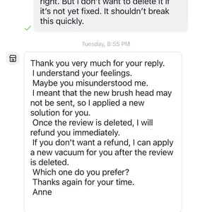 ****UPDATE!! DO NOT TRUST POSITIVE REVIEWS ON THIS!! I have attached the chat message with seller. They are bribing people to remove reviews and manipulate them. Lost suction and brush head broke in less than 2 weeks! Product is junk! Company won’t make right unless you lie in review