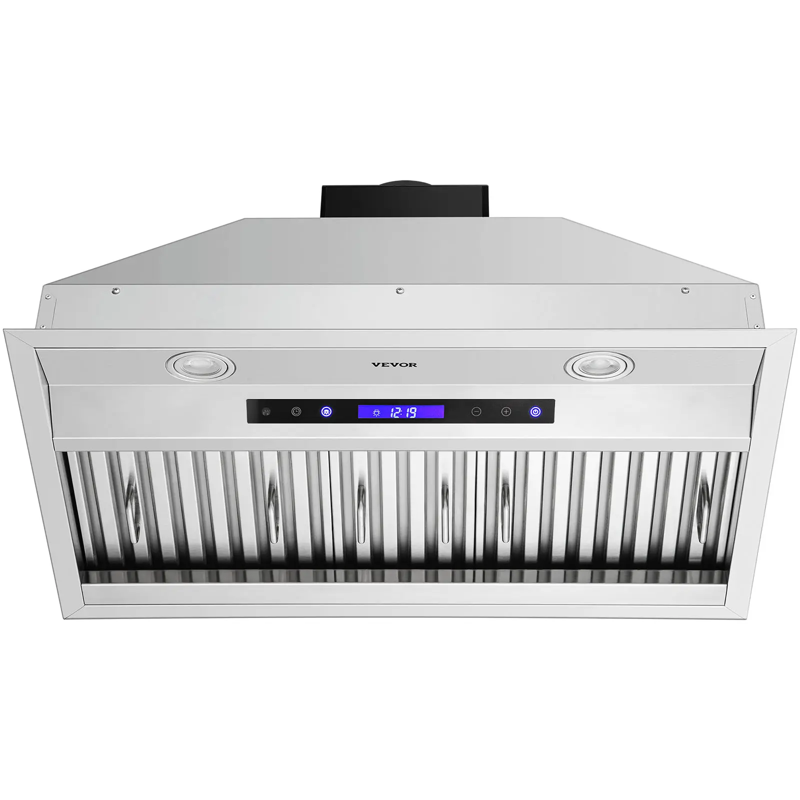 • Touch & Remote Control: This insert vent hood adopts two optional control methods. The acrylic smart screen provides ease of use by simply touching to select the modes you need. It is also equipped with a remote control, which can be operated from a distance effortlessly. Thanks to these two labor-saving methods, it’s easy for you to adjust between 4 speeds, turn on/off the lights, and switch between clock & delayed shutdown function.