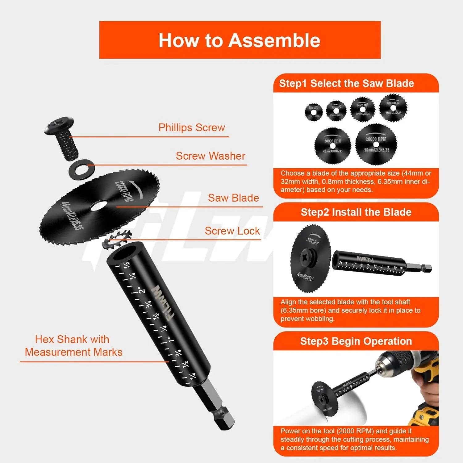 【Safe Operation Guide】Assembly is simple: just attach the spring washer, sawtooth (ensure the edge faces upward for secure fastening), and flat washer in order, then tighten with the included hex wrench. For optimal safety, use with a brushless power tool, wear cut-resistant gloves, and maintain a speed during operation.