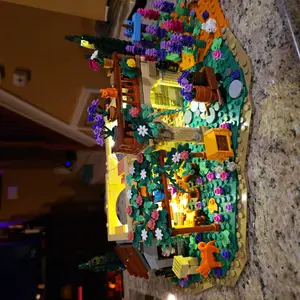 The three-level lavender house building block kit exudes unique charm at every level. Each level reflects exceptional artistry, making this immersive masterpiece truly remarkable!