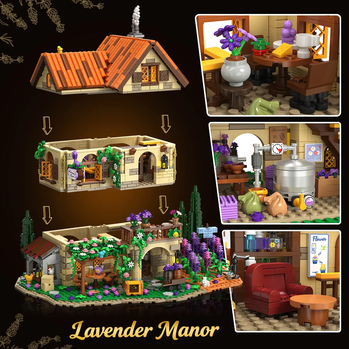 INSOON Lavender Manor House Building Set for Adults Teens Boys Girls 12+