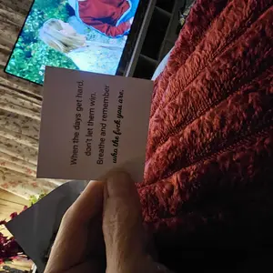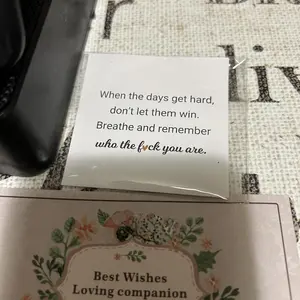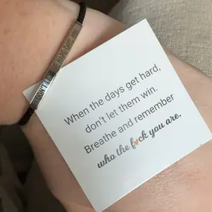 I thought I was ordering the other one that "Remember who the fuck you are" is on the bracelet not the card. But what is I was sent is the other way around. I'm disappointed. Got it for my daughter but I haven't even given it to her yet. It's not the one I wanted to give her.
