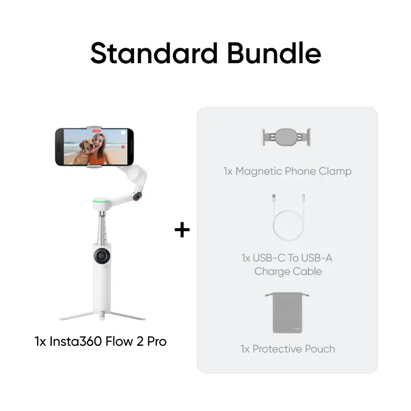 Ever struggled to keep your smartphone steady while capturing life's best moments? Meet the Insta360 Flow 2 Pro Standard Bundle, your new foldable AI phone gimbal that turns shaky videos into smooth cinematic gold. Whether you're shooting solo or with friends, this portable stabilizer features 3-axis stabilization, multi-person tracking, and 360° pan tracking, making it perfect for dynamic scenes and group shots. With a built-in selfie stick and tripod, you can easily switch from handheld to hands-free shooting. The 10-hour battery life means you won’t miss a moment, while AI-powered editing tools in the Insta360 app help you create polished videos effortlessly. Plus, it supports Dolby Vision and Apple ProRes for stunning video quality. Compatible with over 200 iOS apps and controllable via Apple Watch or a second smartphone, this gimbal fits seamlessly into your tech lifestyle. The bundle includes the foldable gimbal, Apple DockKit, and all the essentials you need to start shooting like a pro. Ready to elevate your mobile videography? Grab the Insta360 Flow 2 Pro and capture smooth, creative footage anytime, anywhere!
