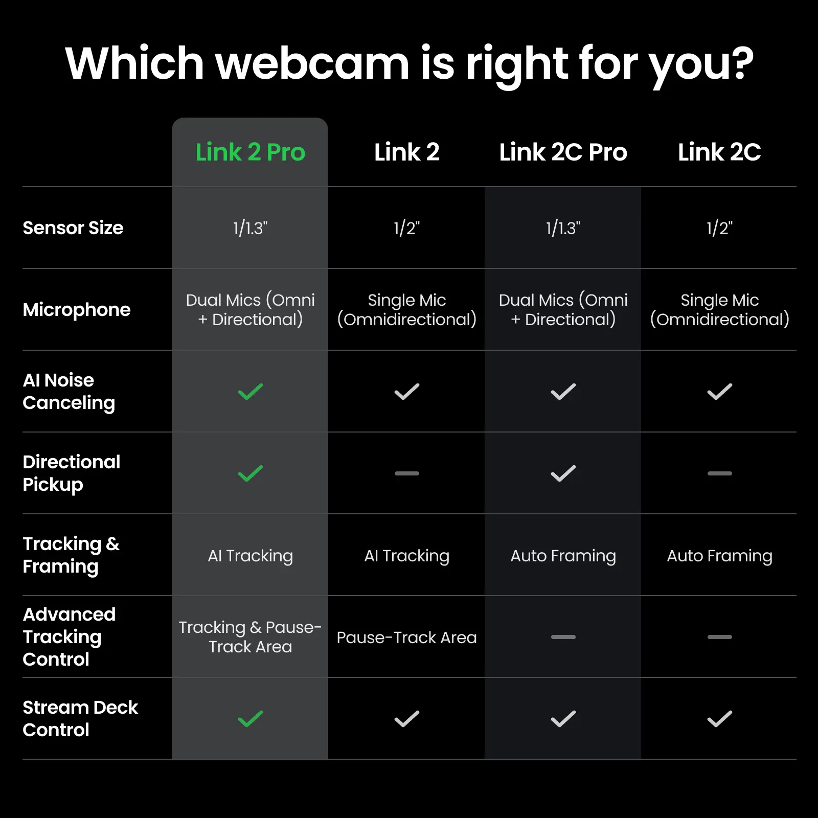 Insta360 Link 2 Pro – 4K PTZ Webcam for PC/Mac, 1/1.3” Sensor, Low-Light, AI Tracking, HDR, Directional Noise-Canceling Mics, Supports Stream Deck, Zoom, Teams, Twitch for Streaming or Meetings