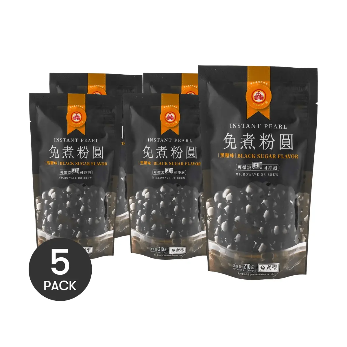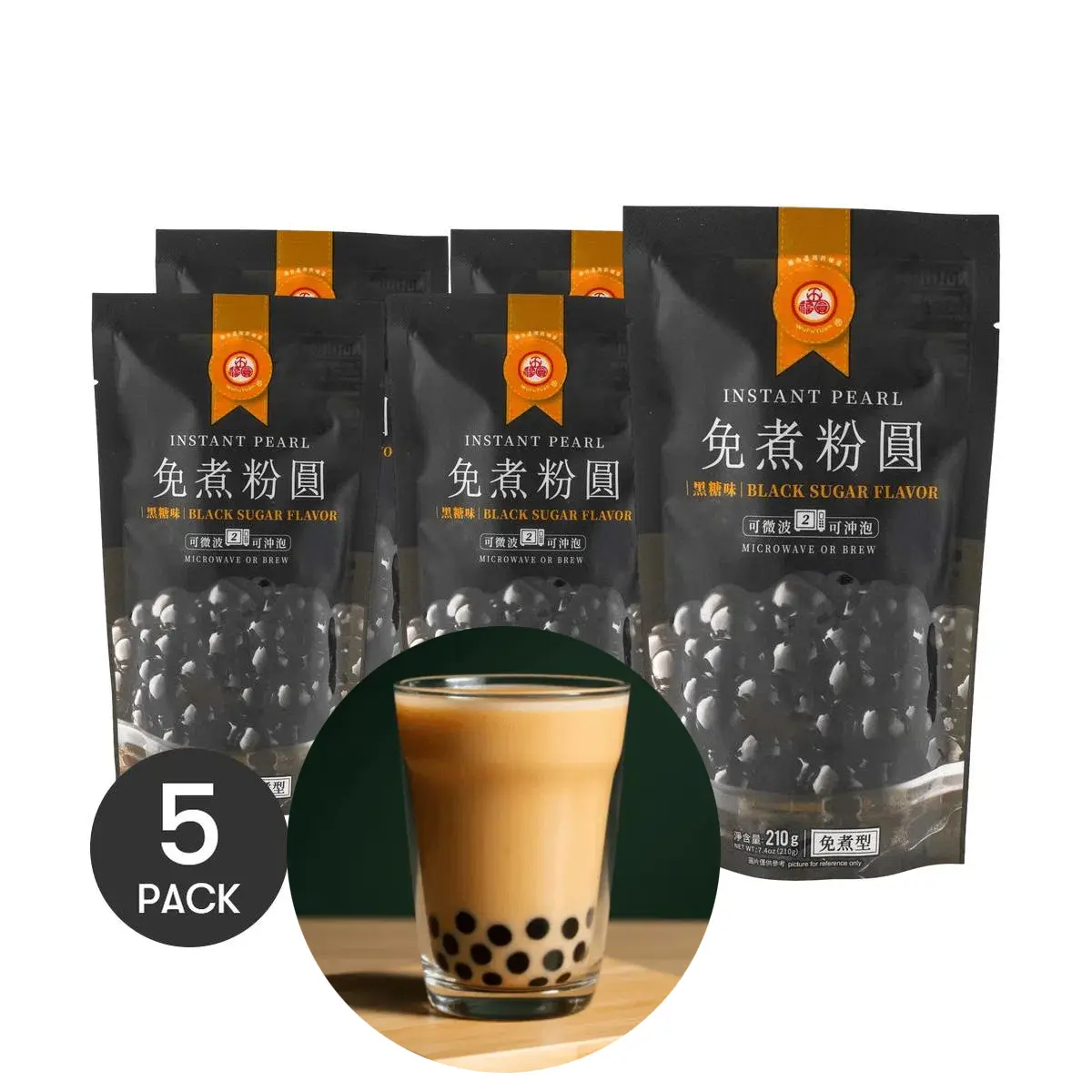 5 Packs Instant Boba Pearls - Brown Sugar Flavor, 7.4oz * 5  [The Soul of Bubble Tea][Microwave-Ready in 2 Minutes]