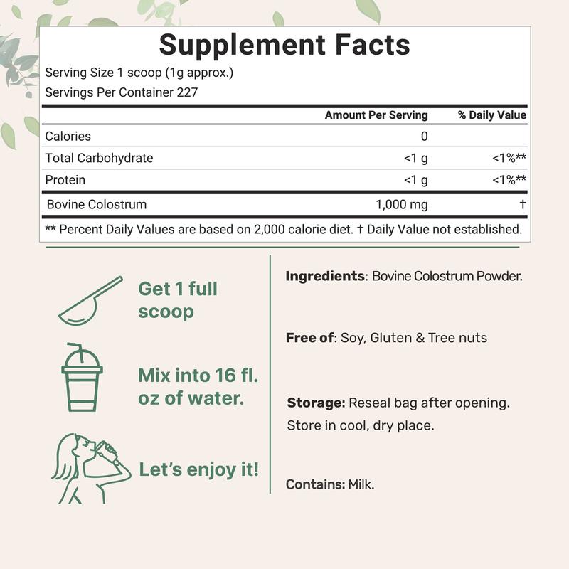 Lo mejor de lo mejor tengo tiempo tomándolo y me he sentido muy agusto de mi estómago normalmente todo me caía mal y con el calostrum se me ha mejorado mucho mi digestión lo recomiendo.