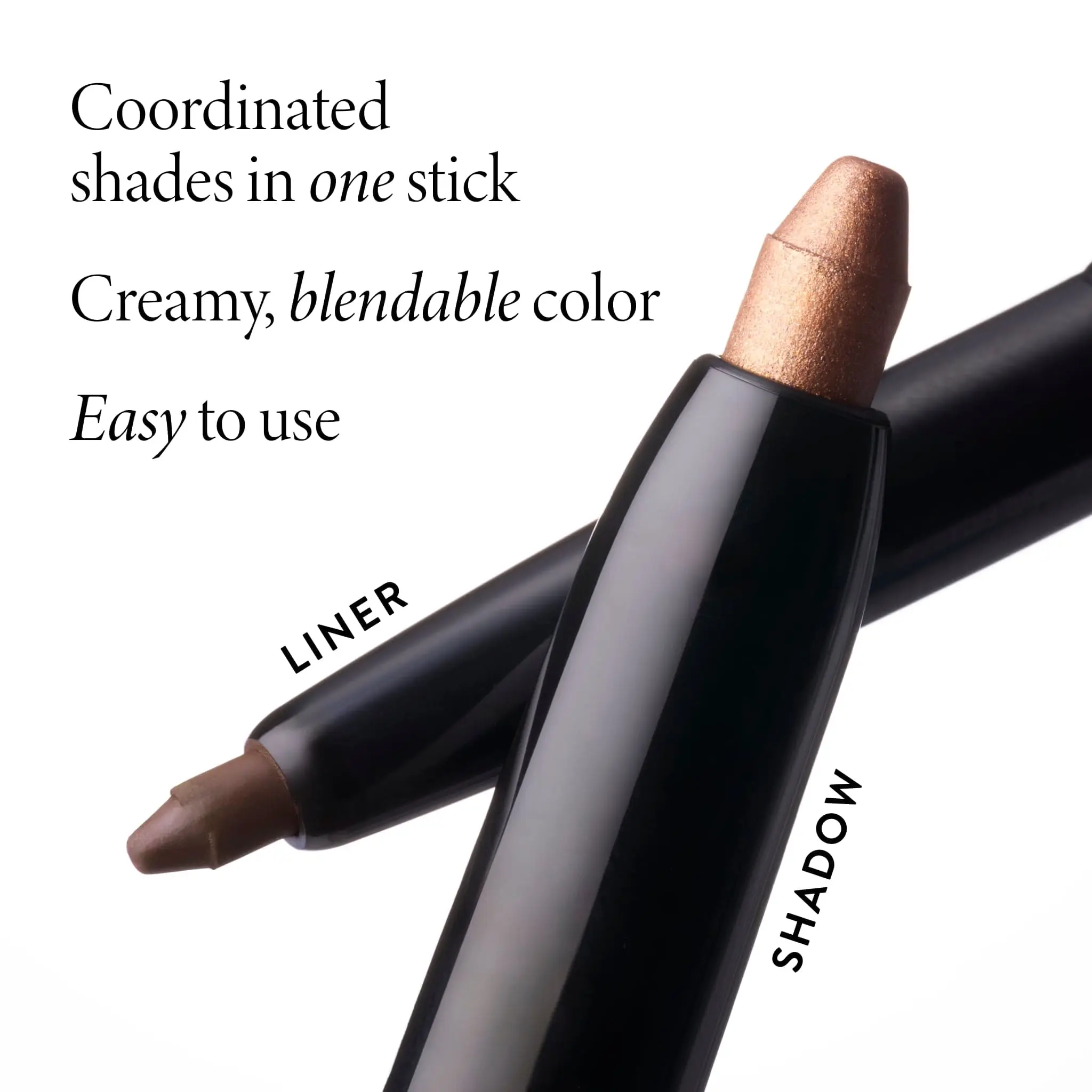 This eye stick features a long-wearing cream shadow on one side and a smooth-glide liner on the other. Perfectly coordinated colors in one! The cream shadow blends easily and resists creasing. The eyeliner glides on smoothly for precision application.